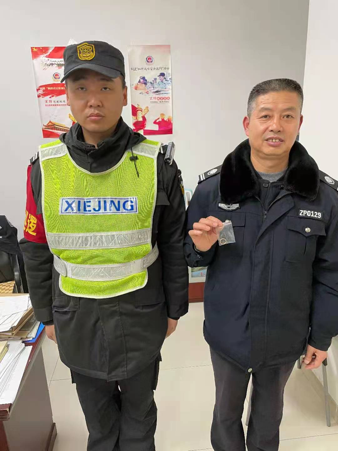 隨后,張玉華、耿茂張通過現(xiàn)場走訪、查閱監(jiān)控等手段,最終為失主尋回了遺失的戒指,民警于13日22:00在派出所窗口予以歸還。
