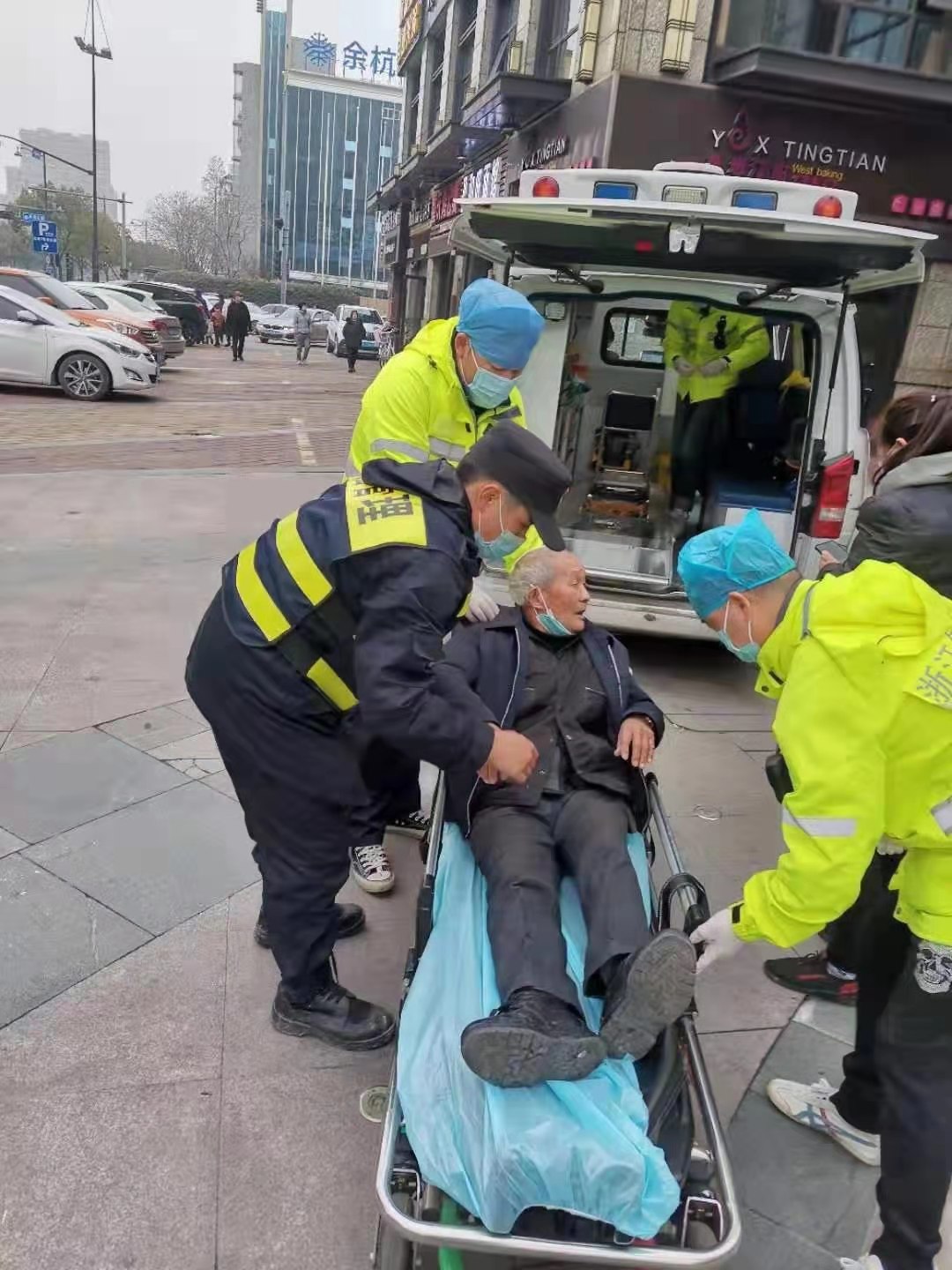 很快,120救護(hù)車趕到現(xiàn)場,張艮振將大伯?dāng)v扶上救護(hù)車后,兩人回到崗位繼續(xù)執(zhí)勤。