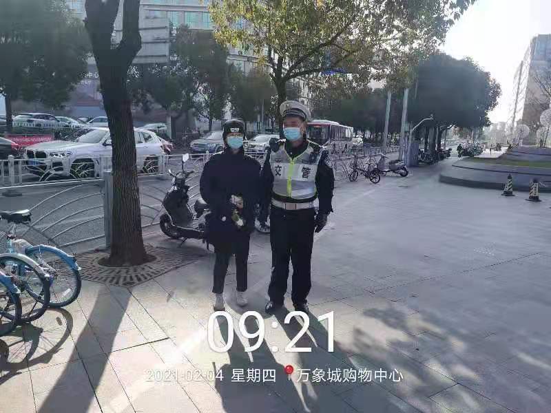 2月3日,宗保公司駐吳中虹莘交管輔警項目隊員王洪坤幫助市民找到丟失的手機(jī)。