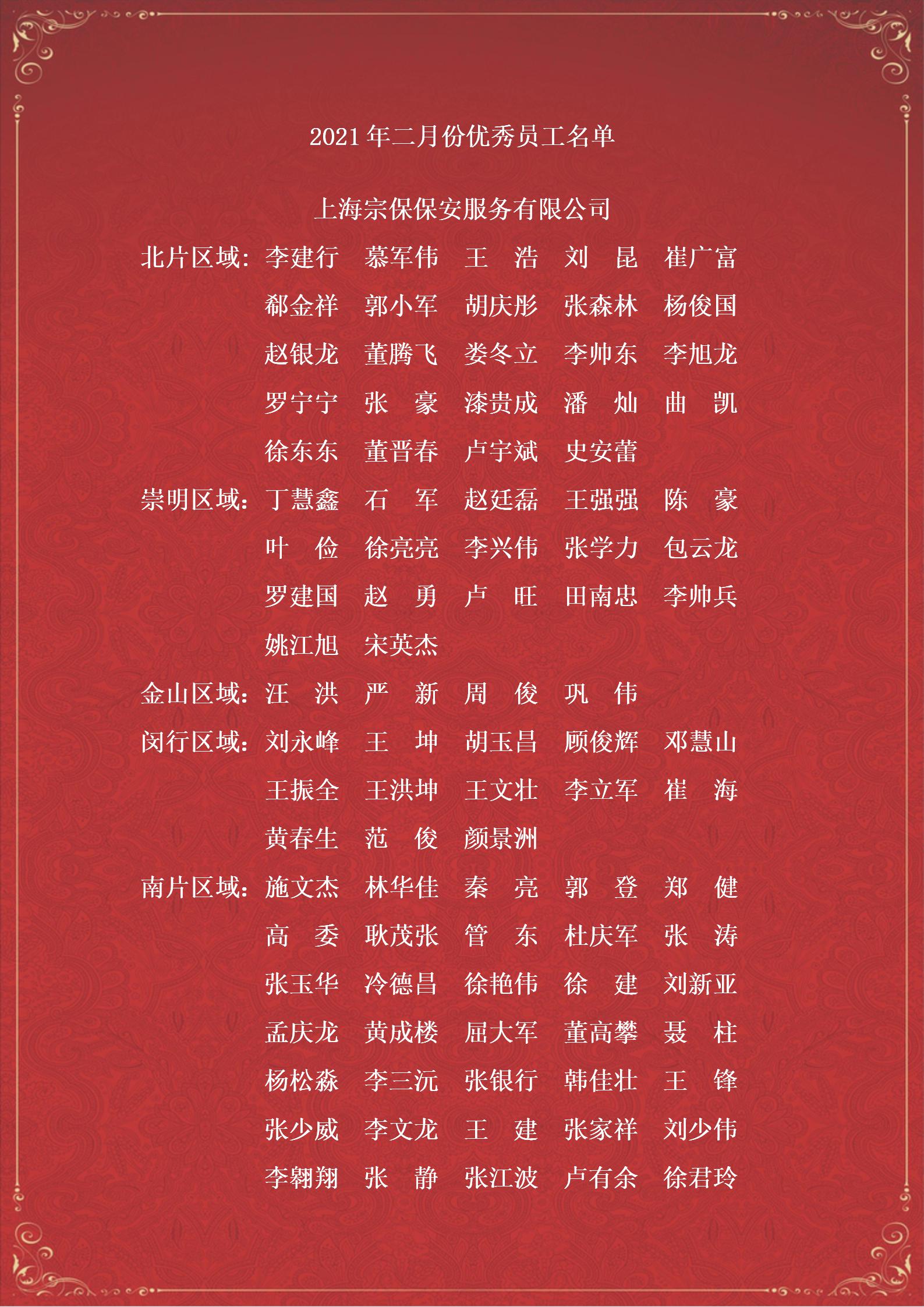 二月份正值2021年新春佳節(jié),廣大員工響應(yīng)“疫情防控非必要不返鄉(xiāng)”的號(hào)召,舍棄與家人團(tuán)聚,不分心不走神,按照甲方的要求,服從公司的部署,凝心聚力,積極投入到各項(xiàng)輔助安全保障、市容協(xié)管工作之中,期間涌現(xiàn)出了一批表現(xiàn)突出的優(yōu)秀個(gè)人。為表彰先進(jìn),樹立典型,激勵(lì)后進(jìn),在各項(xiàng)目推薦,各部門審定把關(guān)的基礎(chǔ)上,經(jīng)公司董事會(huì)研究,決定對(duì)2月份工作表現(xiàn)優(yōu)異的李建行等157名優(yōu)秀員工,予以通報(bào)表彰獎(jiǎng)勵(lì)(獎(jiǎng)金已隨二月份工資發(fā)放)。