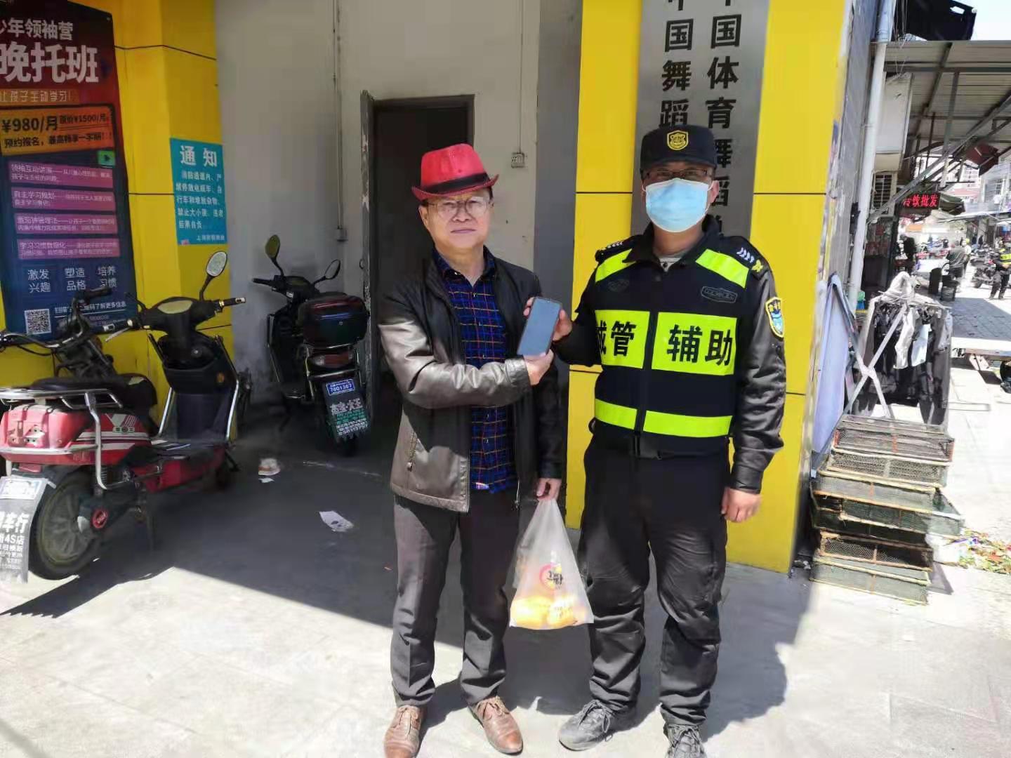 巡邏途中撿手機 物歸原主獲稱贊—周浦市容項目隊員撿到手機