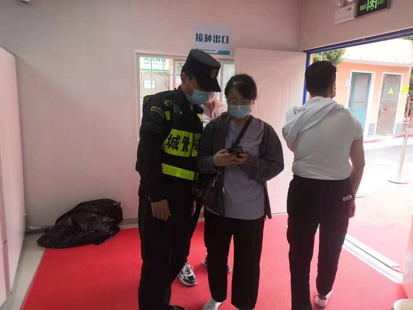 當天10:10左右,任明強在沈梅路社區(qū)醫(yī)院保障疫苗接種時,在疫苗接種入口處撿到一部蘋果手機。因手機鎖屏,無法獲取信息與失主聯(lián)系,便在留觀區(qū)入口處等待。