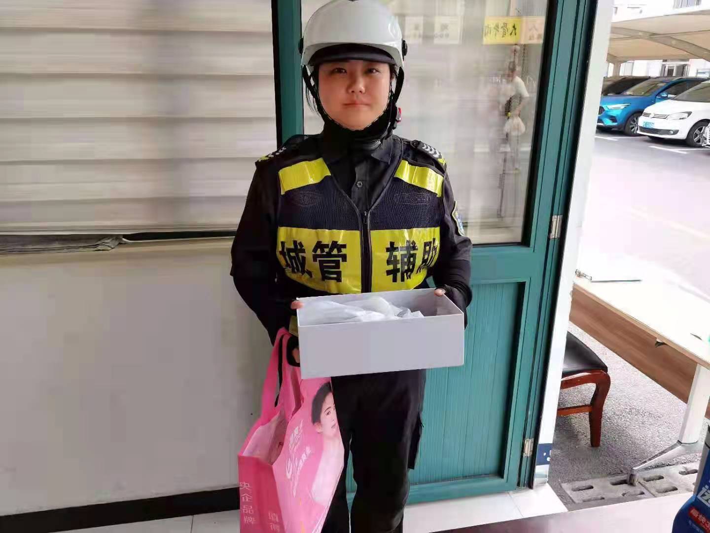 當天15:30,曹秋霞巡邏至小上海步行街時,在路邊撿到一個手提袋,袋內(nèi)有一雙嶄新的女士皮鞋和兩盒禮品??紤]到失主可能會回來尋找,便在原地等候。半個小時后,仍然沒有人前來尋找,曹秋霞便將手提袋送交到周浦城管中隊窗口,然后回到崗位繼續(xù)巡邏。