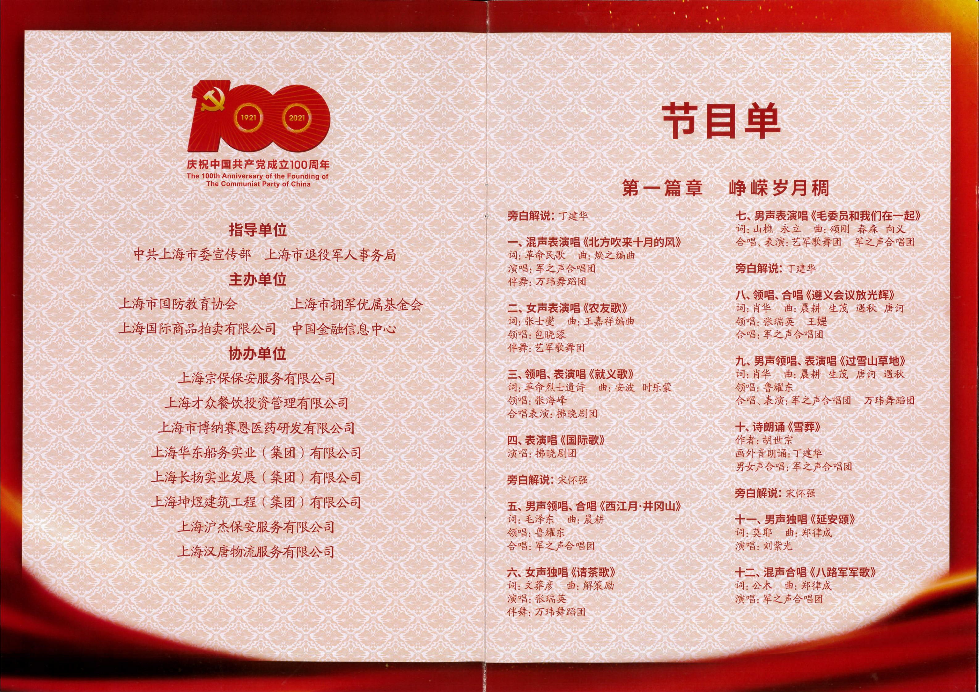 該演出是上海市慶祝中國共產(chǎn)黨成立100周年群眾性系列活動之一,由中共上海市委宣傳部、上海市退役軍人事務(wù)局共同指導(dǎo),宗保公司參與贊助。