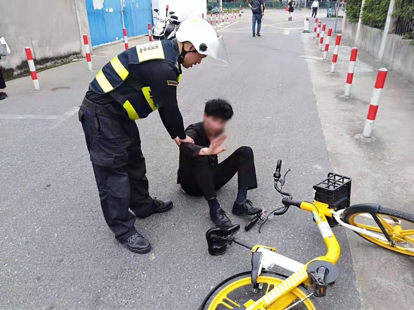 男子騎車突倒地 隊員救助暖人心—三林市容項目隊員救助騎車摔倒男子