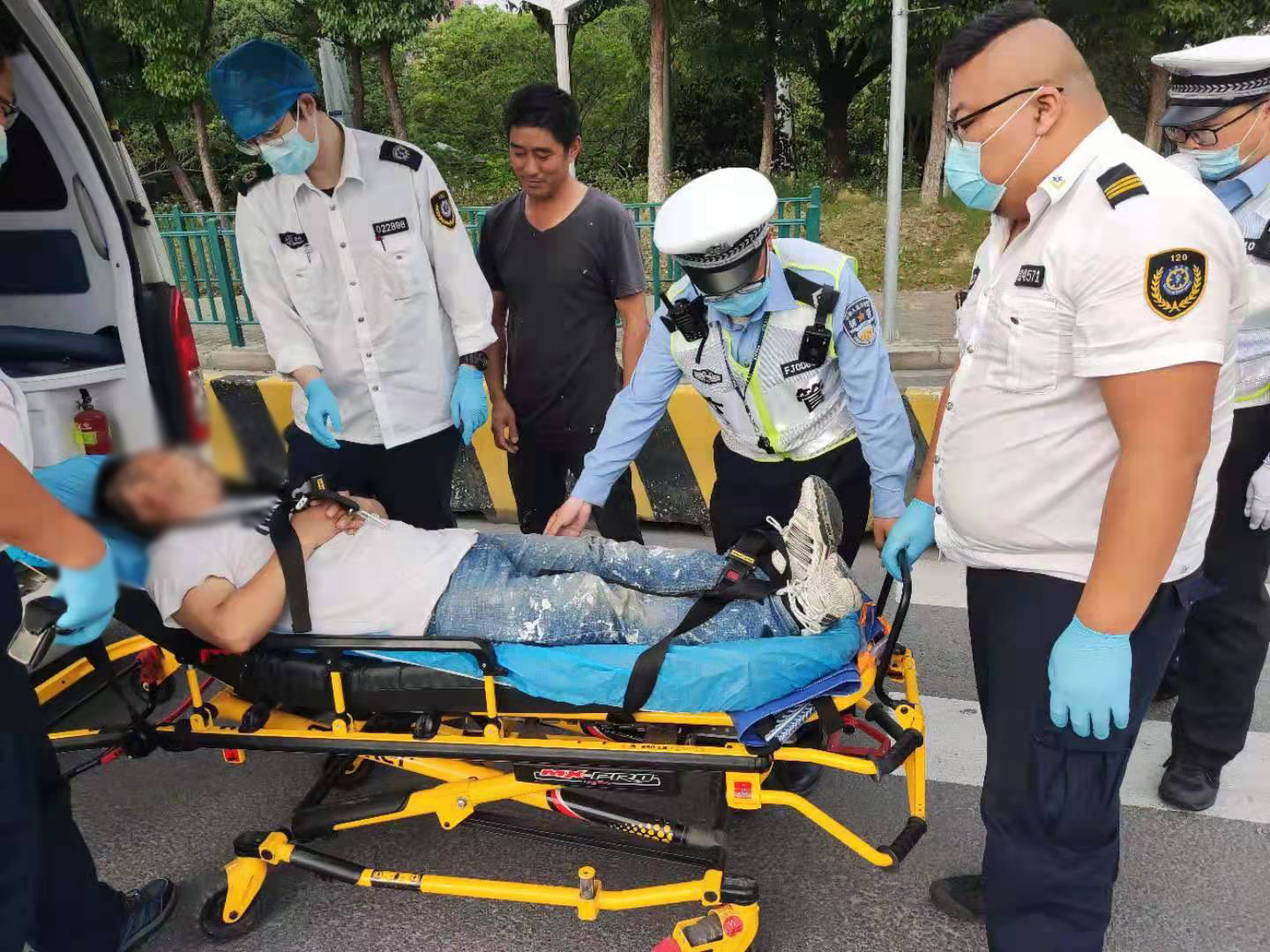 很快,救護車、交警先后趕到現(xiàn)場,隊員們協(xié)助醫(yī)護人員將男子抬上救護車,由醫(yī)護人員送男子前往醫(yī)院緊急救治。