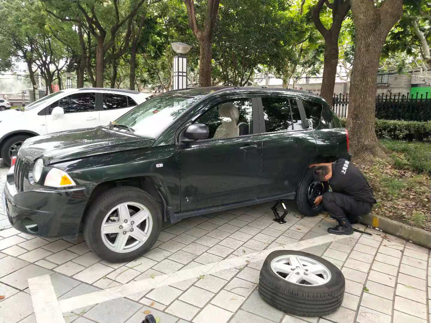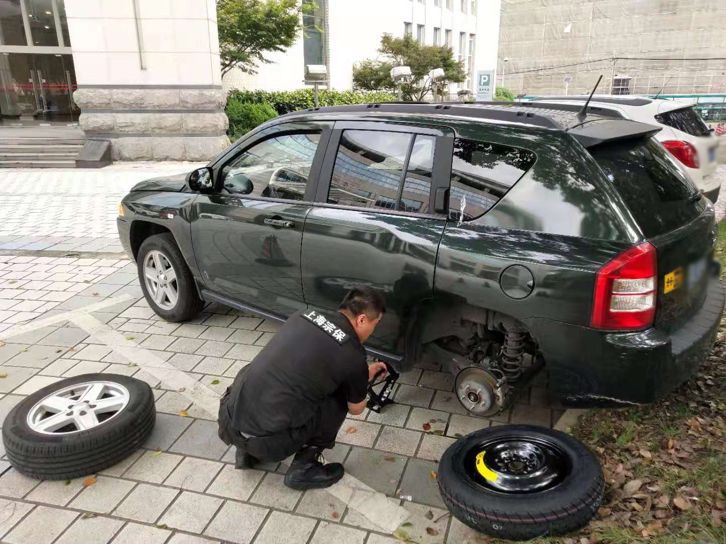 輪胎扎釘無法行 隊員換胎解難題—市委黨校項目隊員幫助黨校學員更換車備胎