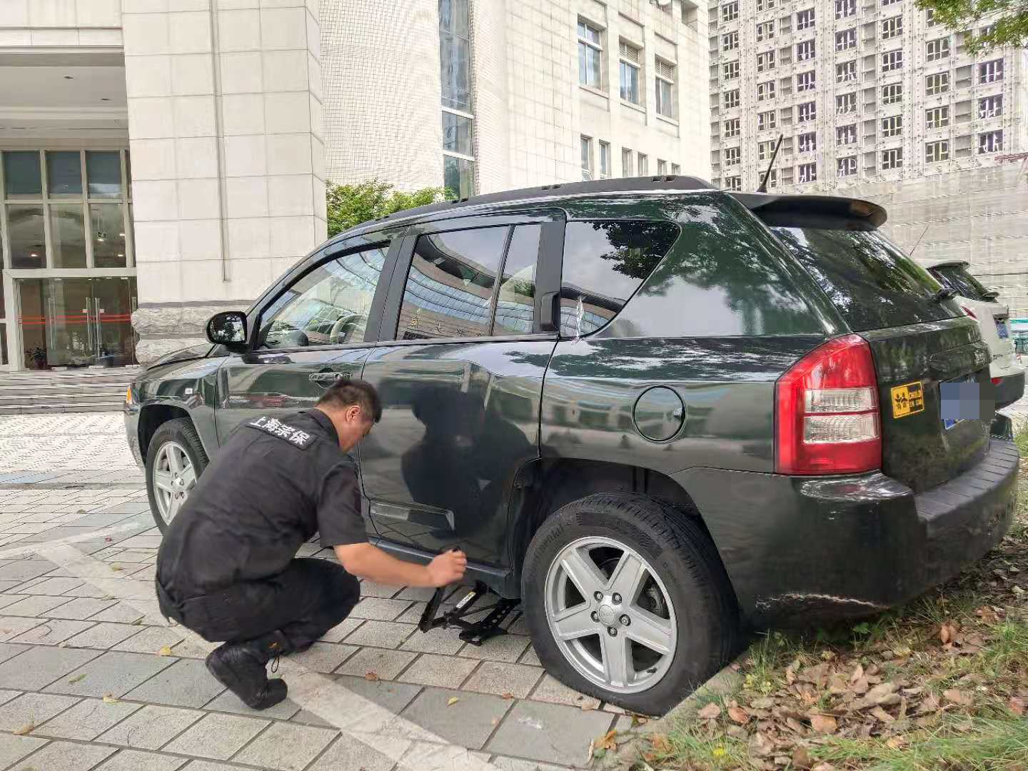 7月8日,宗保公司駐市委黨校項目隊員幫助黨校培訓學員更換車備胎。