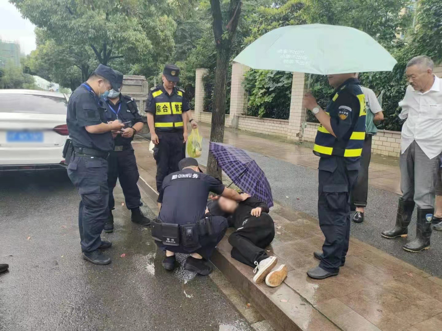 7月3日,浙江民泰駐閑林城管項目隊員幫助醉酒男子。