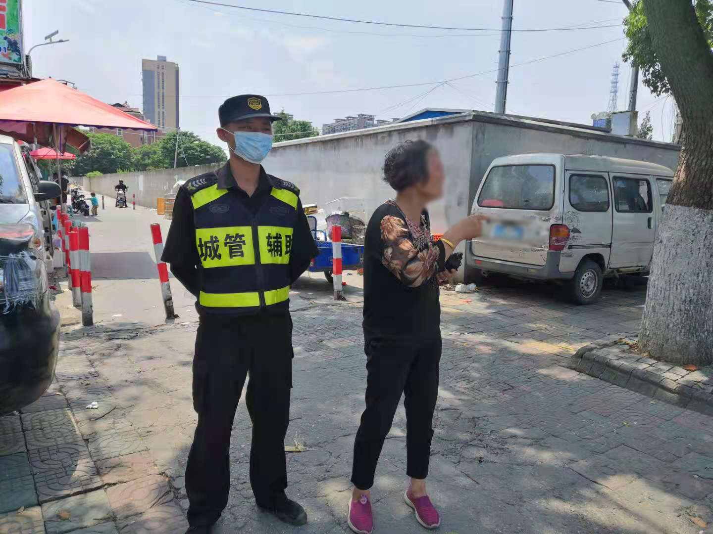 7月10日,宗保公司駐周浦市容項目隊員楊峰幫助迷路老人回家。