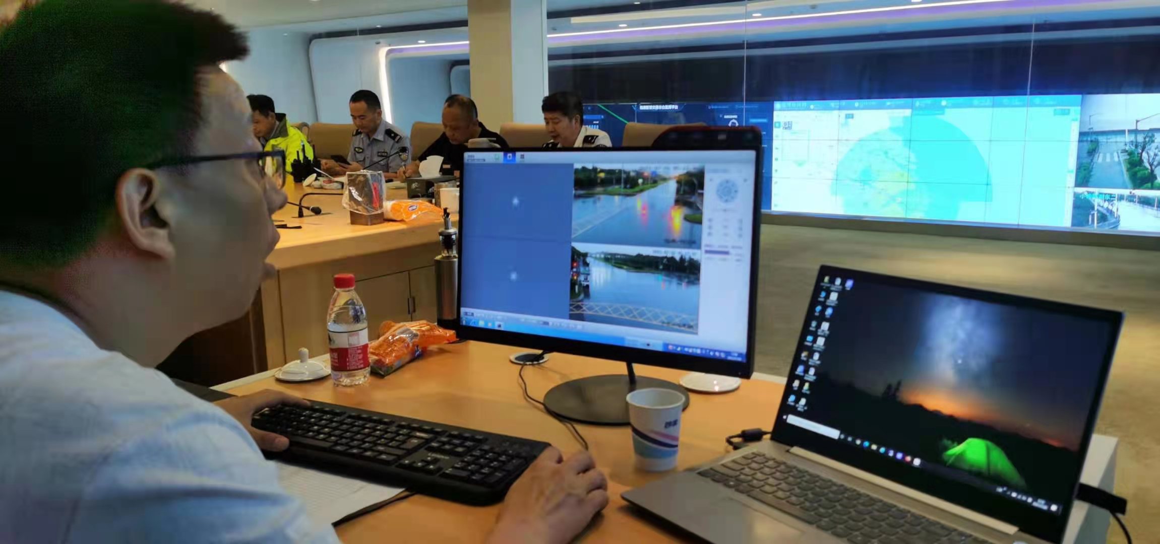 指揮大廳,宗保隊(duì)員緊盯大屏,時(shí)刻關(guān)注著城市運(yùn)行情況。