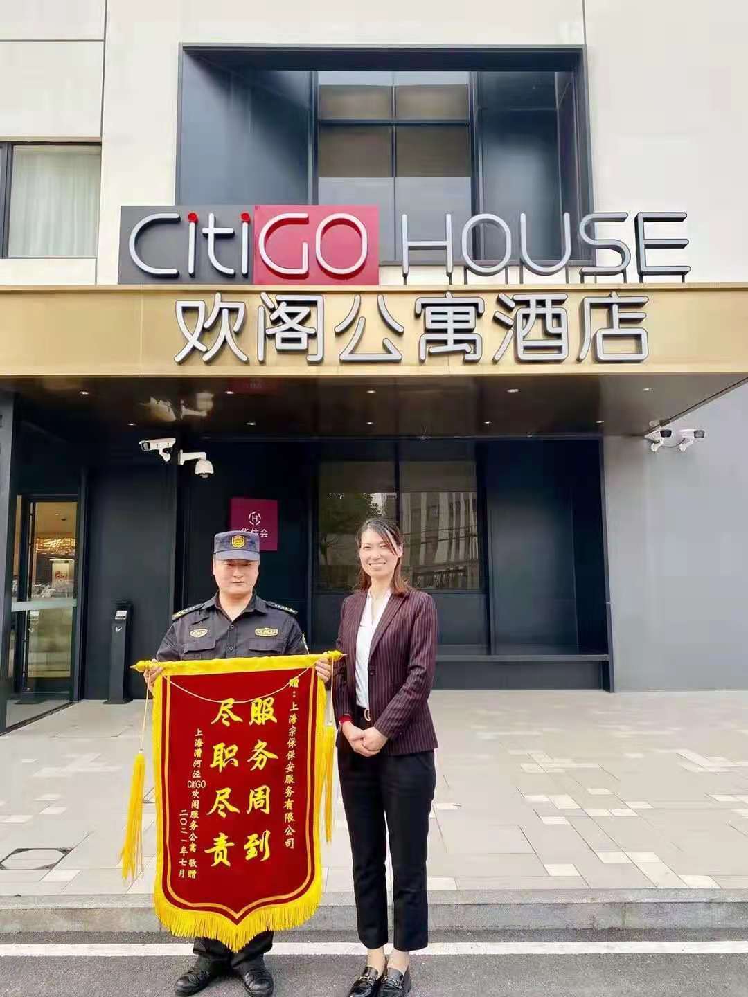 7月12日,宗保公司駐徐匯區(qū)歡閣公寓酒店項目收到酒店贈送的繡有“盡職盡責 服務周到”的錦旗,對宗保公司隊員們的工作給予充分肯定和感謝。