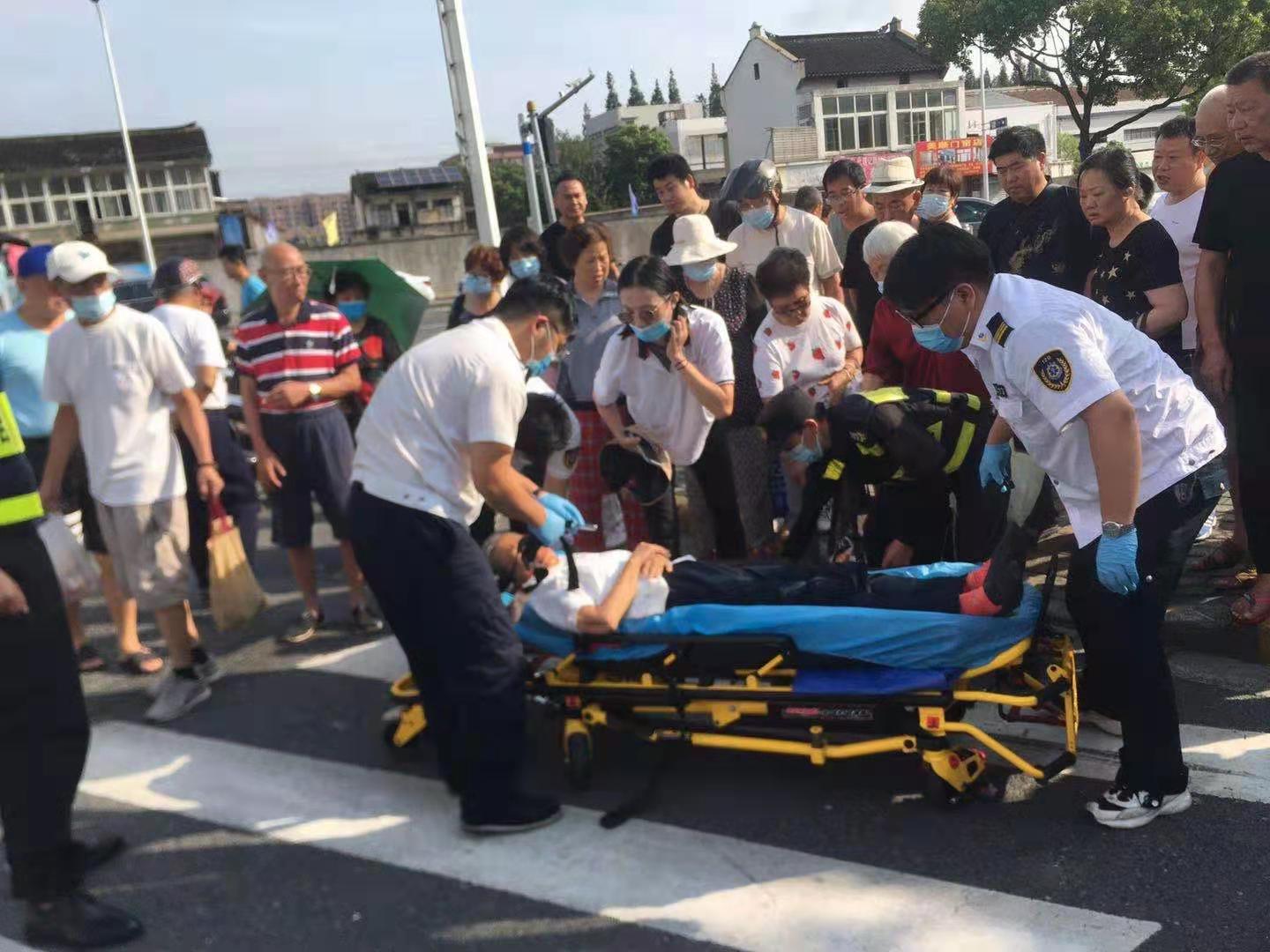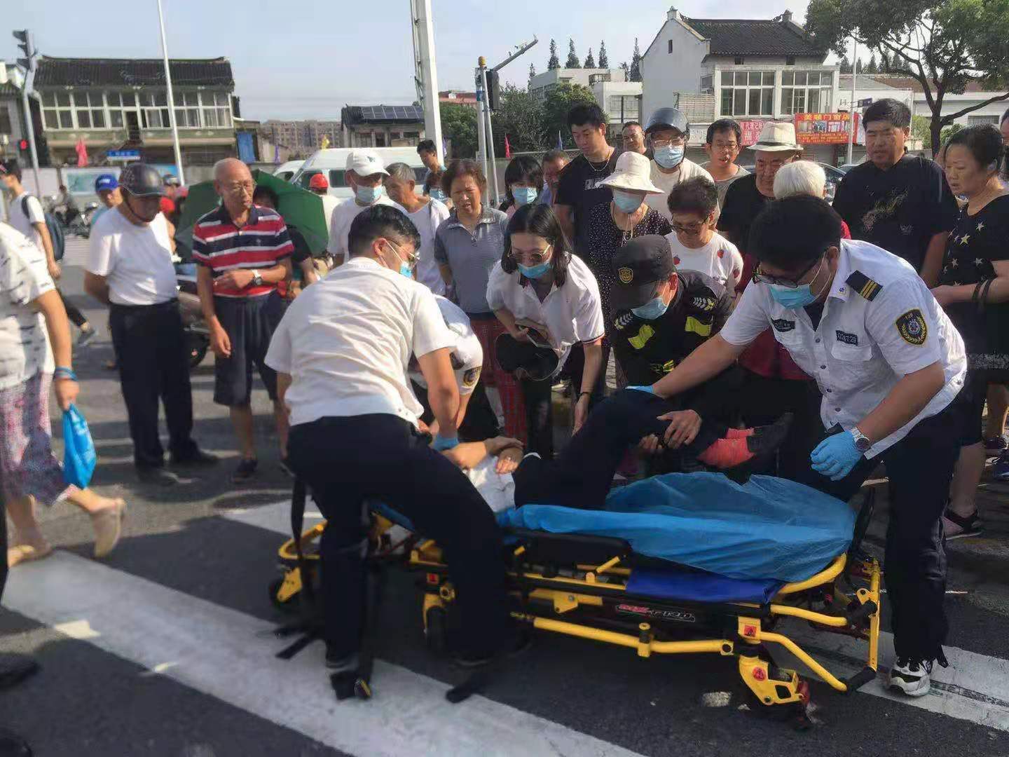 為防止二次事故的發(fā)生,張建建積極疏導(dǎo)過往車輛和行人,維護(hù)現(xiàn)場秩序。120救護(hù)車趕到現(xiàn)場后,張建建又協(xié)助醫(yī)護(hù)人員將受傷老人抬上救護(hù)車,送往醫(yī)院救治。