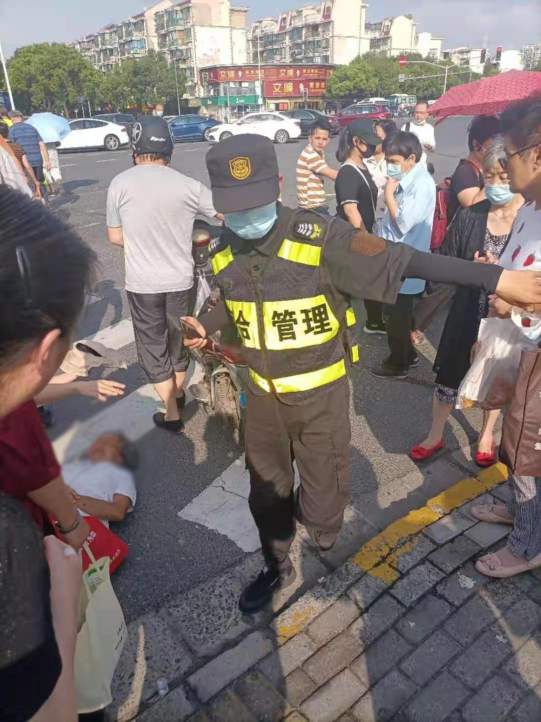 8月18日,宗保公司駐三林市容項目隊員張建建熱心救助受傷老人。