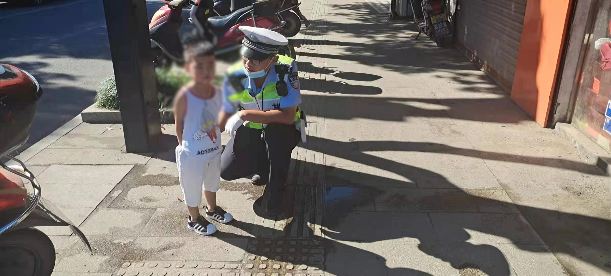 當(dāng)天9:00,宋清華在中泰路杭泰路路口值勤時(shí),發(fā)現(xiàn)一個(gè)小男孩獨(dú)自在馬路邊徘徊,身邊沒有大人陪同,無助地站在路旁。見此情景,宋清華立即上前詢問,得知小男孩與家人走散了。