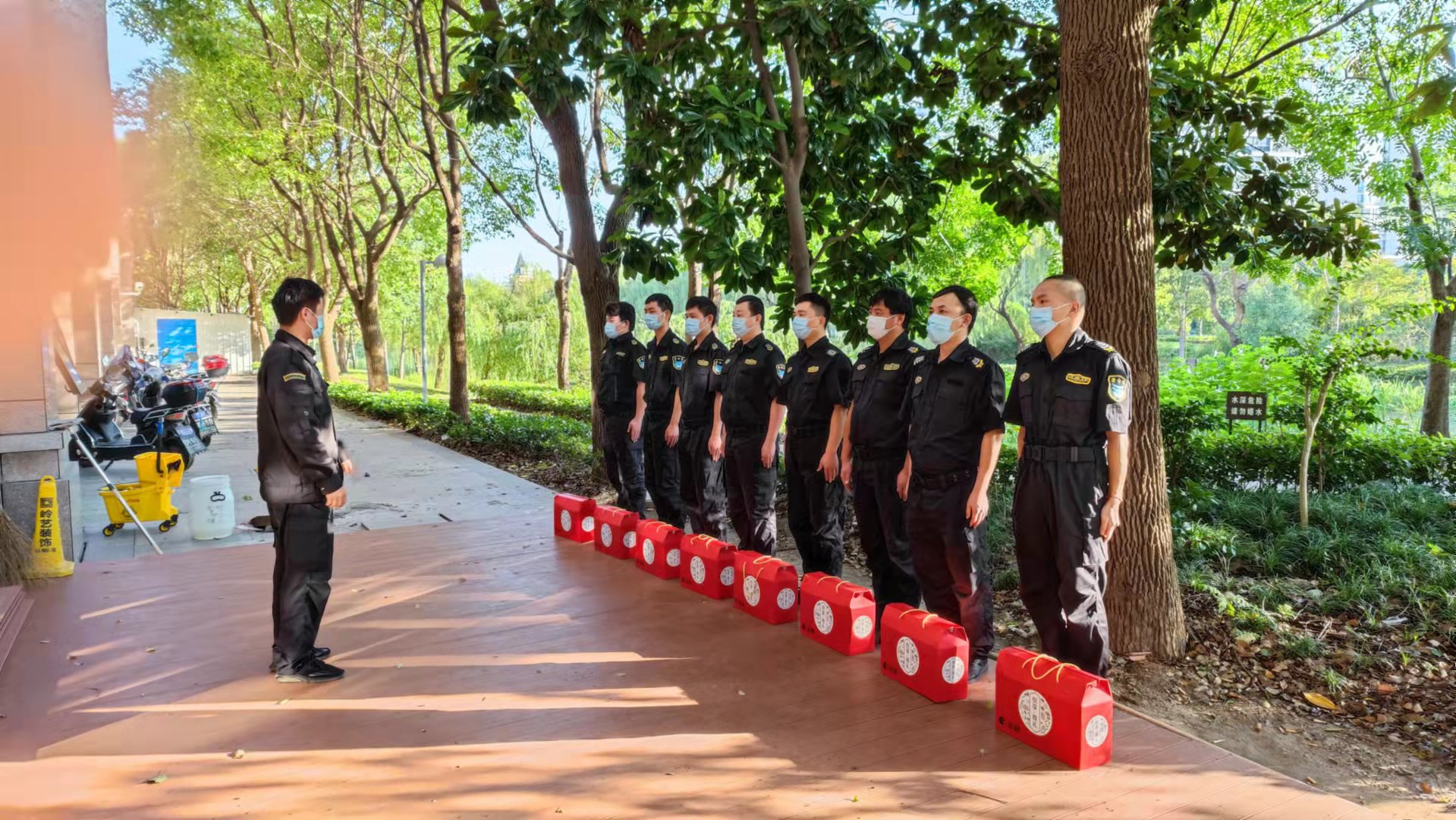 各區(qū)域負(fù)責(zé)人每進(jìn)一個區(qū)域、每到一個項目,代表公司董事長馮中保向員工送上慰問品和節(jié)日的祝福,充分肯定各位員工放棄中秋闔家團(tuán)圓的機(jī)會,堅守崗位、忘我工作所展現(xiàn)出的奉獻(xiàn)精神和大局意識,叮囑所在項目負(fù)責(zé)人安排好工作和生活,做好個人防護(hù),希望大家履好職盡好責(zé),按照甲方要求完成好工作任務(wù)。