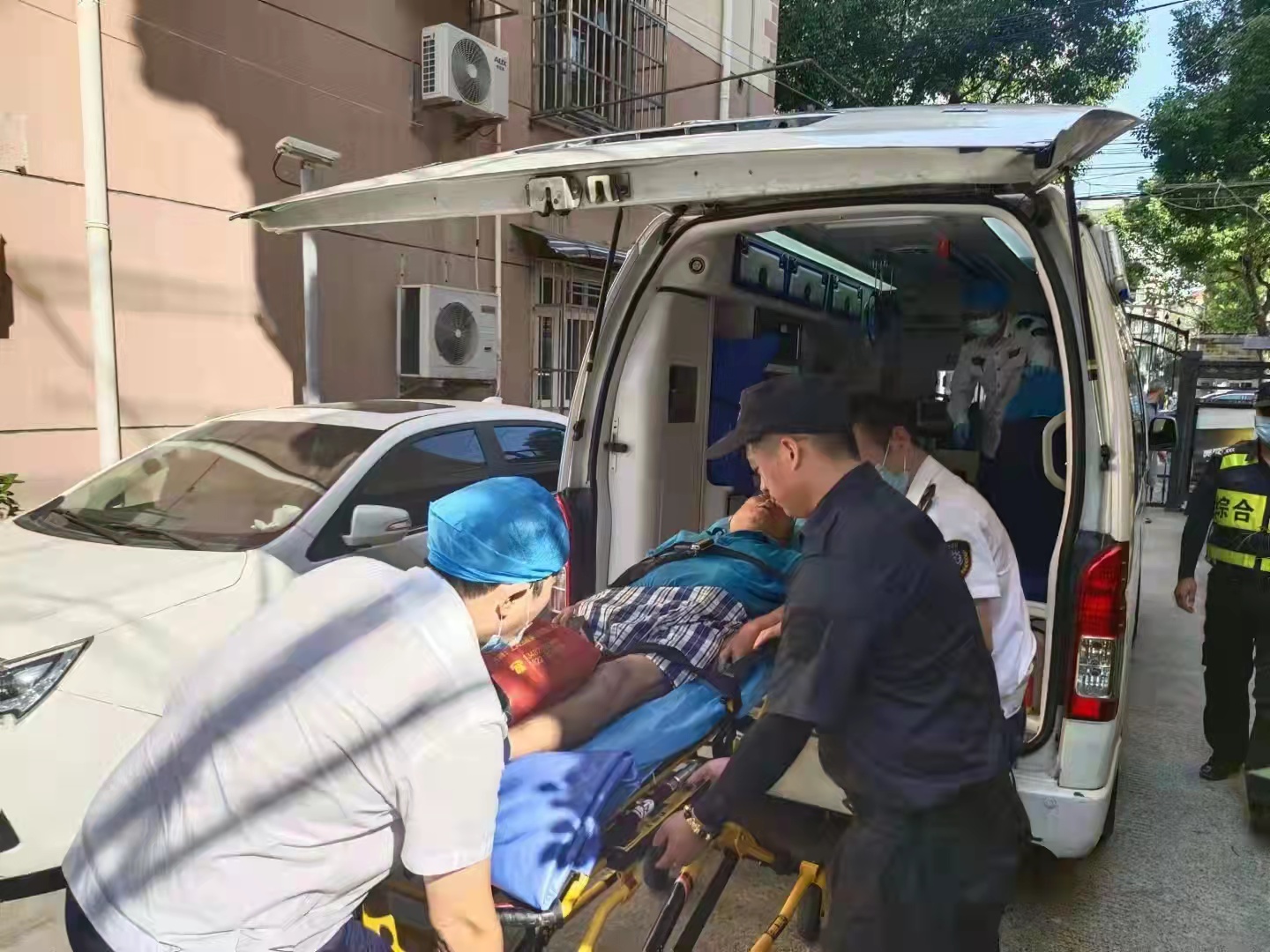 在等待救護車的過程中,劉大旺負責守在老人身邊,以防二次傷害,王龍祥則在現(xiàn)場負責維持秩序。很快,救護車趕到現(xiàn)場,兩人協(xié)助醫(yī)護人員將老人抬上救護車,送往醫(yī)院救治。