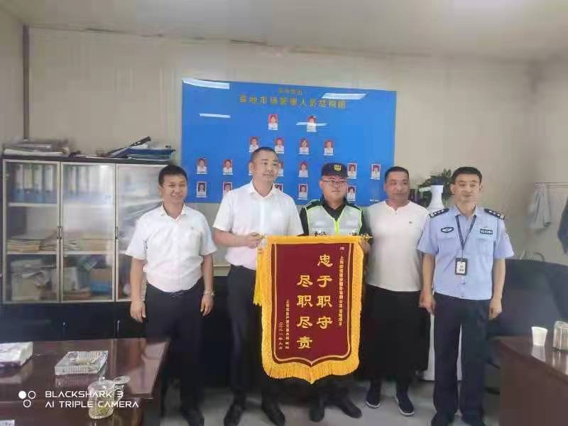 市場(chǎng)巡邏遇盜賊 機(jī)智處置獲錦旗—三林喜地農(nóng)貿(mào)市場(chǎng)項(xiàng)目獲贈(zèng)錦旗