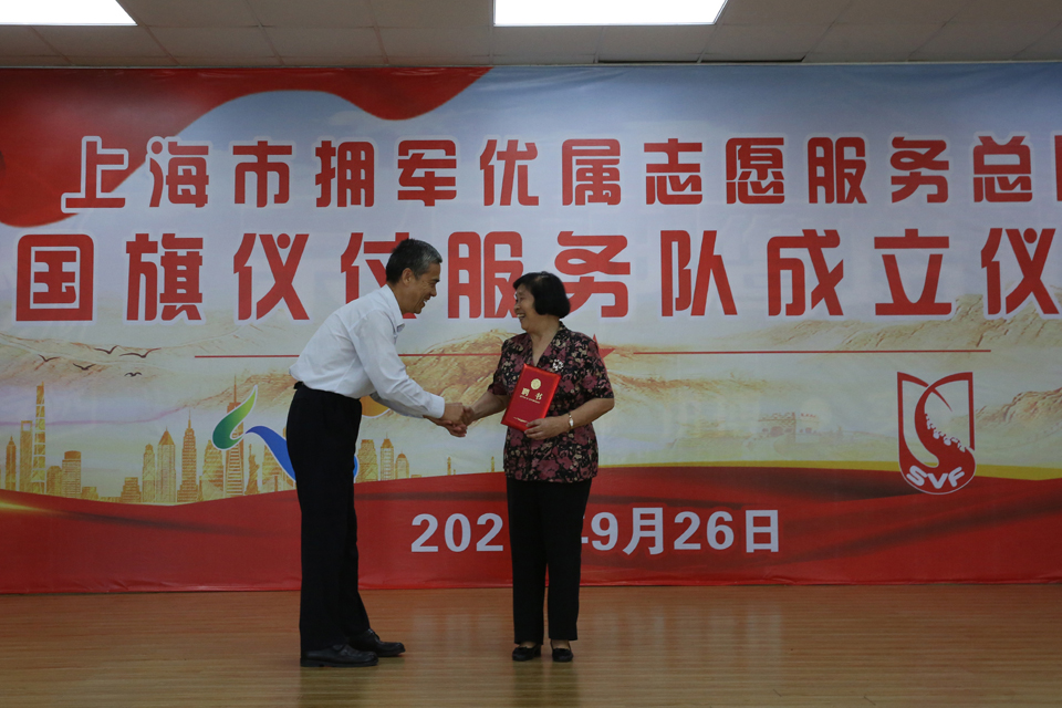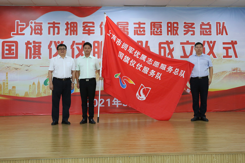 9月26日,上海市擁軍優(yōu)屬志愿服務(wù)總隊(duì)在宗保公司大禮堂舉行國(guó)旗儀仗服務(wù)隊(duì)成立授旗儀式。