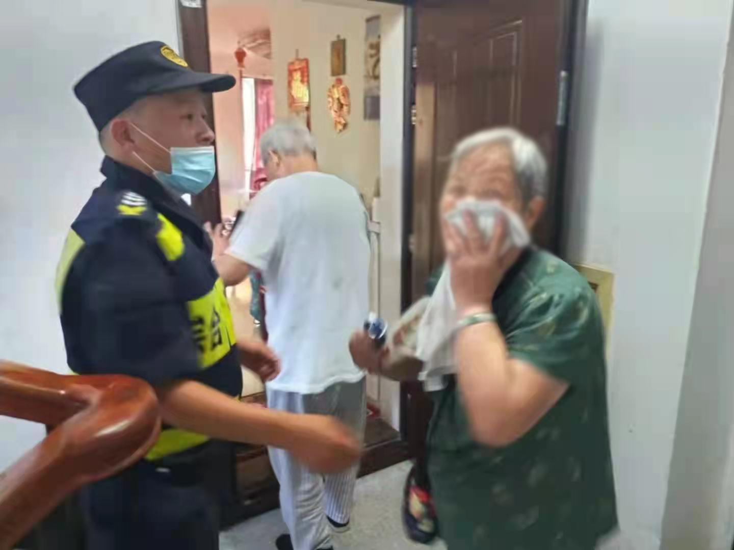 為避免老人再次發(fā)生意外,兩人請示組長后,便小心翼翼地攙扶著老人,安全地將其護(hù)送到家。