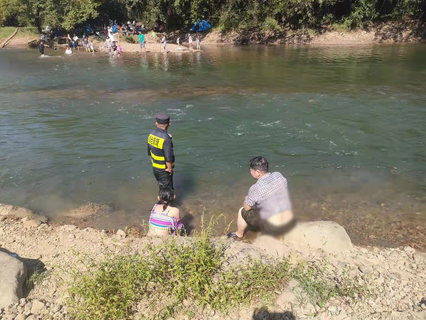 當(dāng)日15:30,張騰配合城管中隊在徑山雙溪漂流旅游景點進(jìn)行安全保障期間,發(fā)現(xiàn)一名在水中耍水的小女孩,快要游到深水漩渦區(qū)時,立即大喊呼叫提醒。