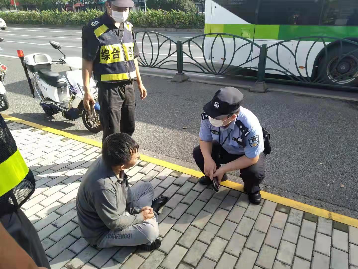 男子醉酒躺路邊 隊員幫助獲點贊—三林市容項目隊員幫助醉酒男子
