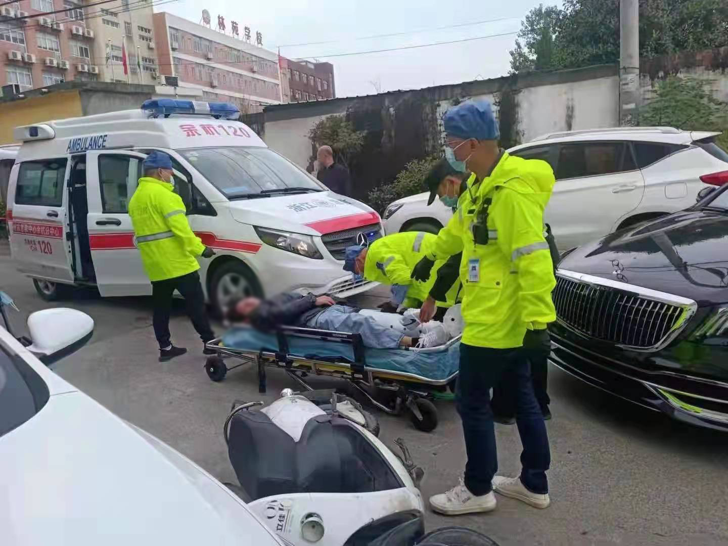 10月21日,浙江民泰駐運(yùn)河護(hù)校安園項(xiàng)目隊(duì)員救助車禍傷者。