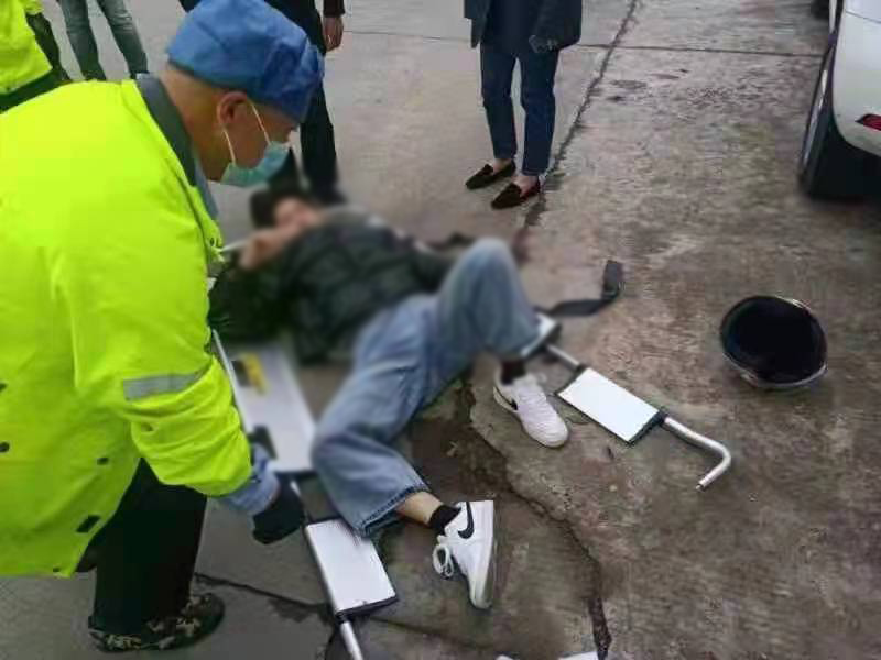 兩名隊(duì)員見狀,立即跑上前察看。電瓶車車主受傷嚴(yán)重,身體無法動(dòng)彈,腦部和左腿均有受傷。