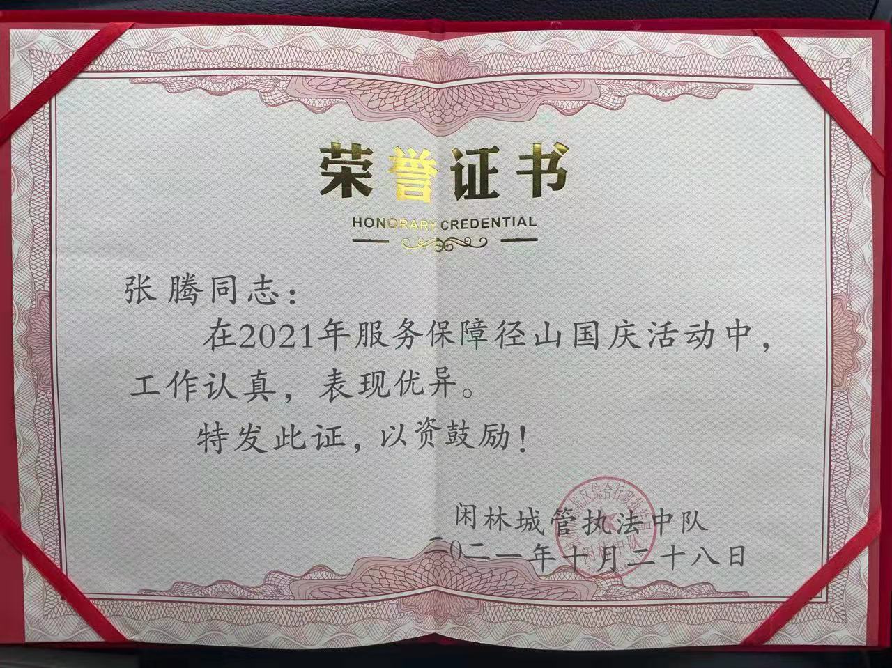 10月28日,浙江民泰駐閑林城管項(xiàng)目隊(duì)員張騰收到閑林城管中隊(duì)隊(duì)長(zhǎng)胡迪民送來的榮譽(yù)證書和慰問補(bǔ)助金,特別獎(jiǎng)勵(lì)他在2021年服務(wù)保障徑山國(guó)慶活動(dòng)中勇救溺水女孩的行為。