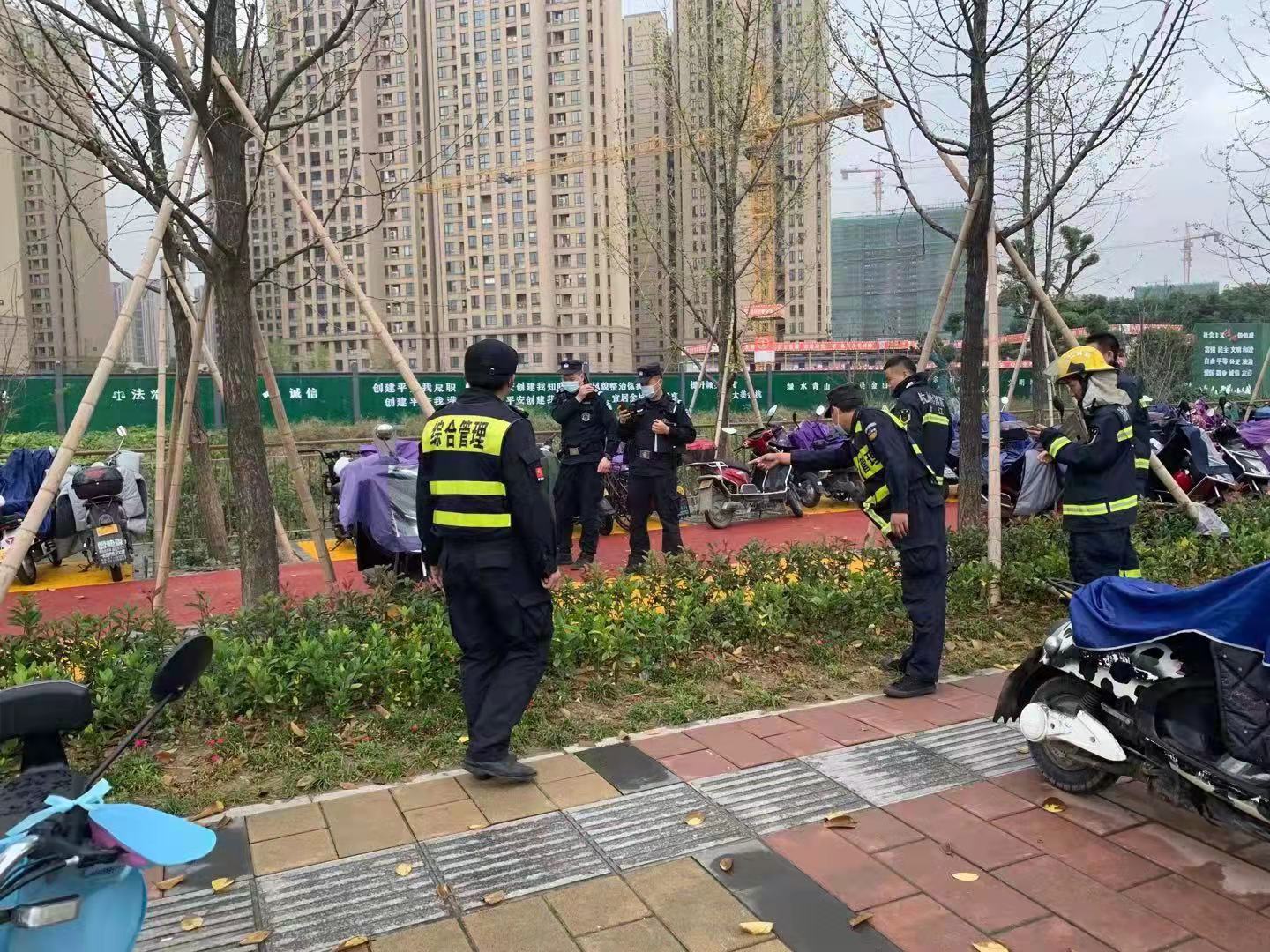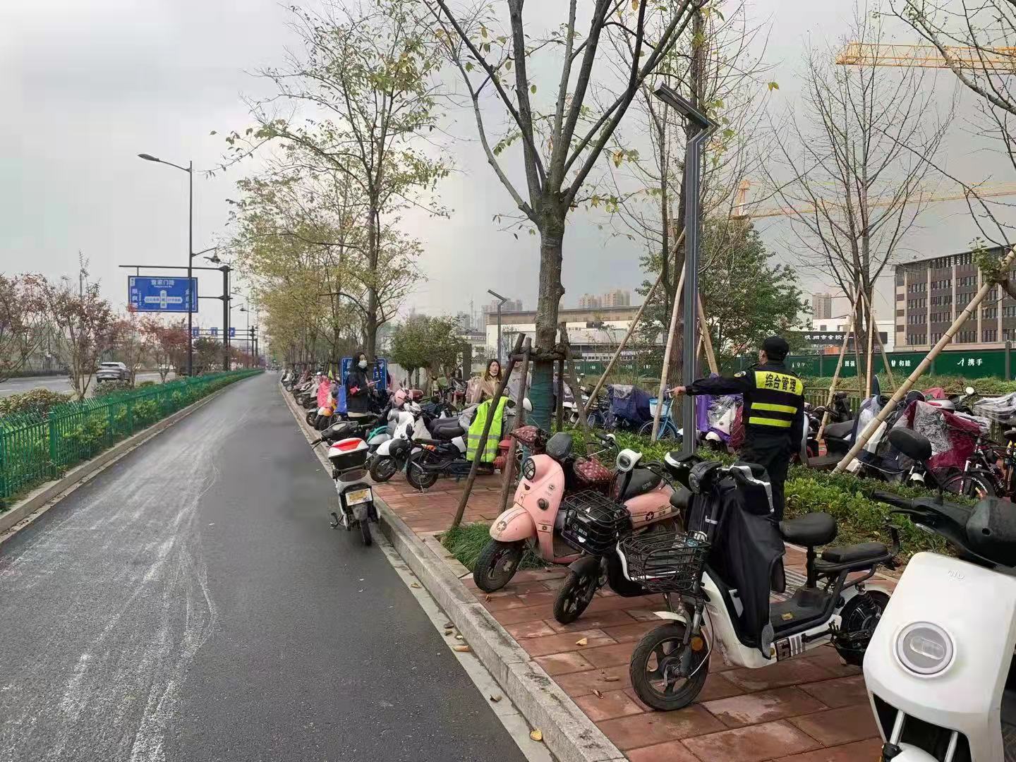 在等待應急救援人員的同時,考慮到現(xiàn)場停放的非機動車較多,一旦起火將無法控制,兩名隊員迅速將周圍車輛集中搬離,并提醒來往人員注意避讓。