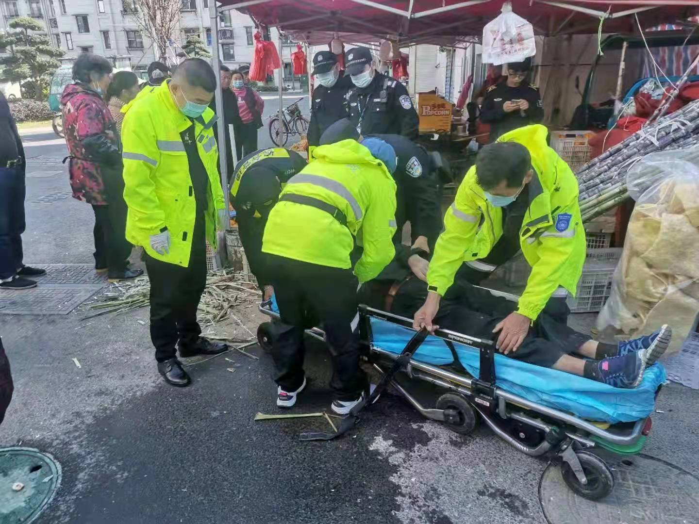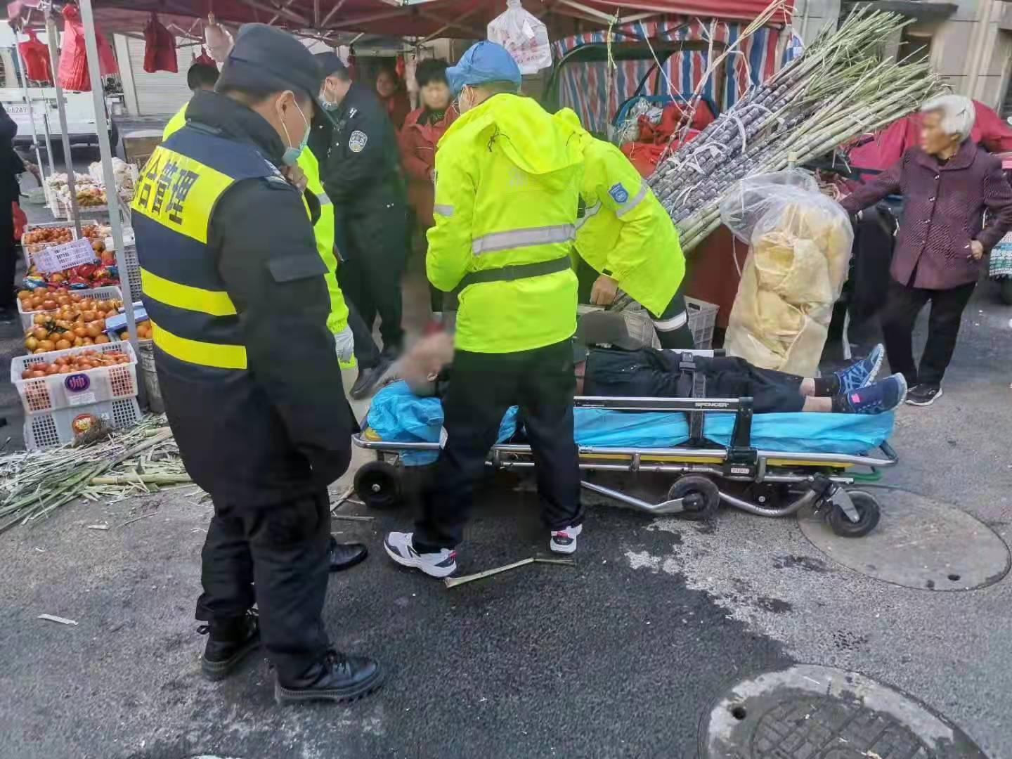 當(dāng)日13:00左右,楊航在塘棲菜市場(chǎng)巡邏時(shí),發(fā)現(xiàn)菜場(chǎng)西門水果攤旁邊有一名男子躺在地上,便立即上前查看。男子面色蒼白,渾身顫抖,嘗試著與他說話時(shí),男子沒有回應(yīng)。