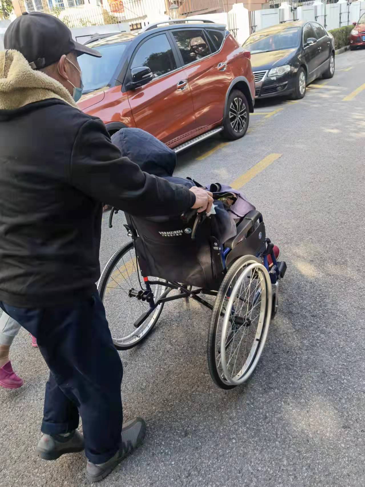 老人年紀(jì)大,又有一定的體重,為了避免發(fā)生意外,范大才背著老人格外小心,不敢過于直起腰,生怕老人從背上滑下來,所以小心翼翼地,一步一步慢慢地往下走。來到樓下,范大才輕輕地將老人放到輪椅上,并叮囑于阿姨抓緊時(shí)間帶老人去醫(yī)院就醫(yī)。