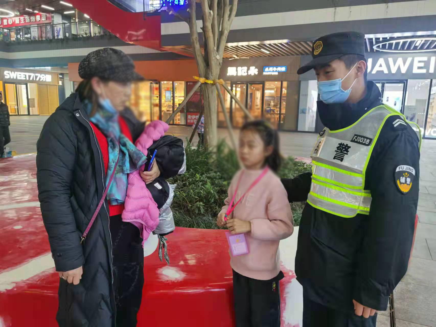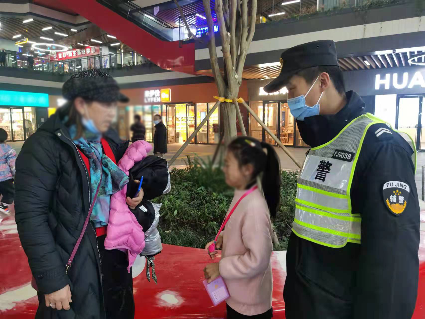 12月10日,宗保公司駐新場輔警項目隊員宋其波幫助走散女童找到家人。