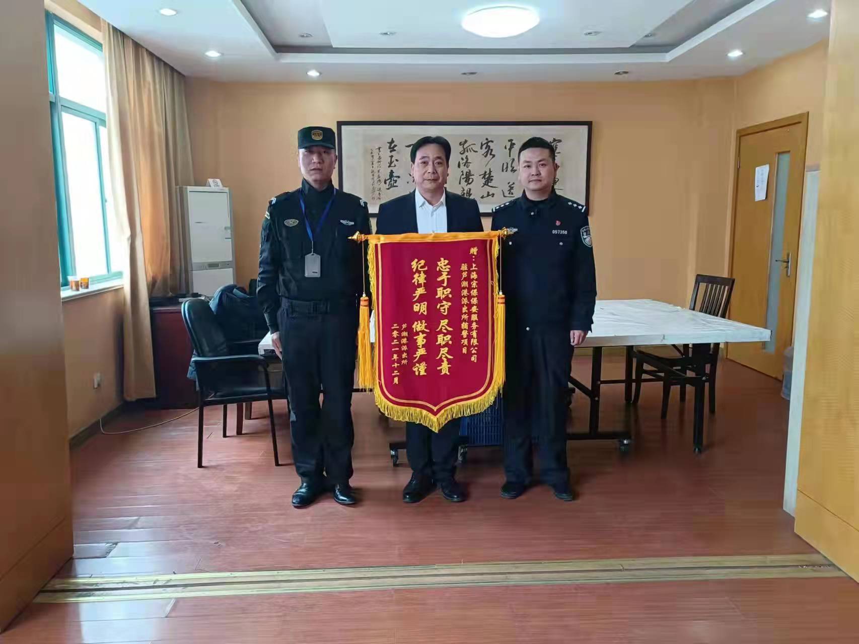 12月25日,宗保公司駐周浦輔警項目收到周浦派出所送來的一面繡有“忠于職守 盡職盡責”的錦旗,感謝宗保隊員良好的工作表現(xiàn)。