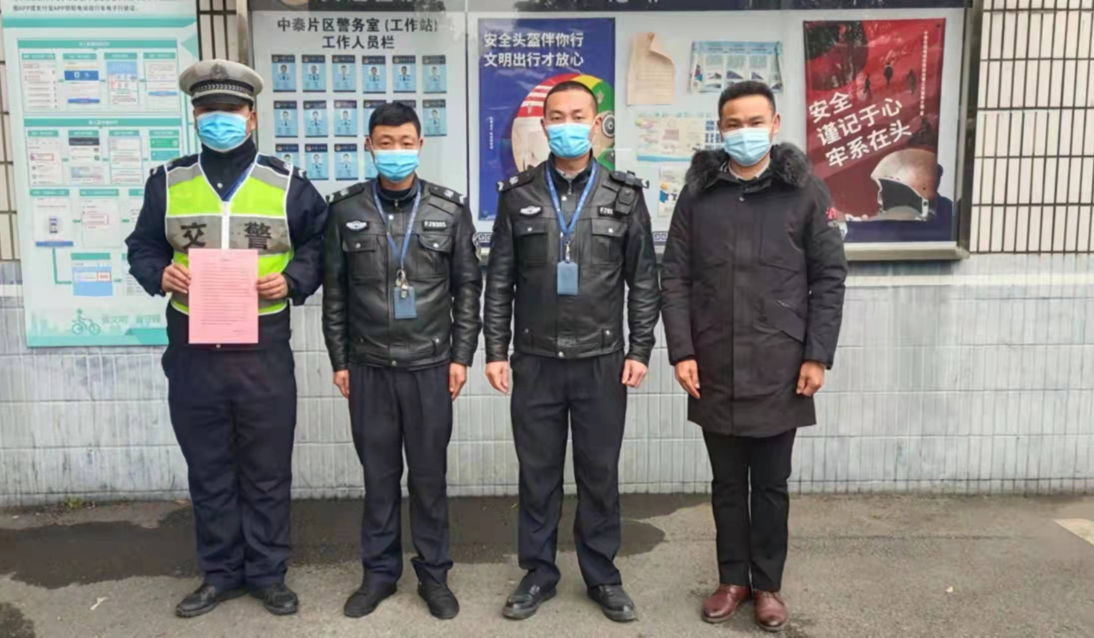 12月28日,浙江民泰公司駐中泰交管輔助項目收到余杭區(qū)中泰街道交警工作站站長王平、指導員應海松的表揚信,表揚民泰員工盡心履職突出的工作表現(xiàn)。