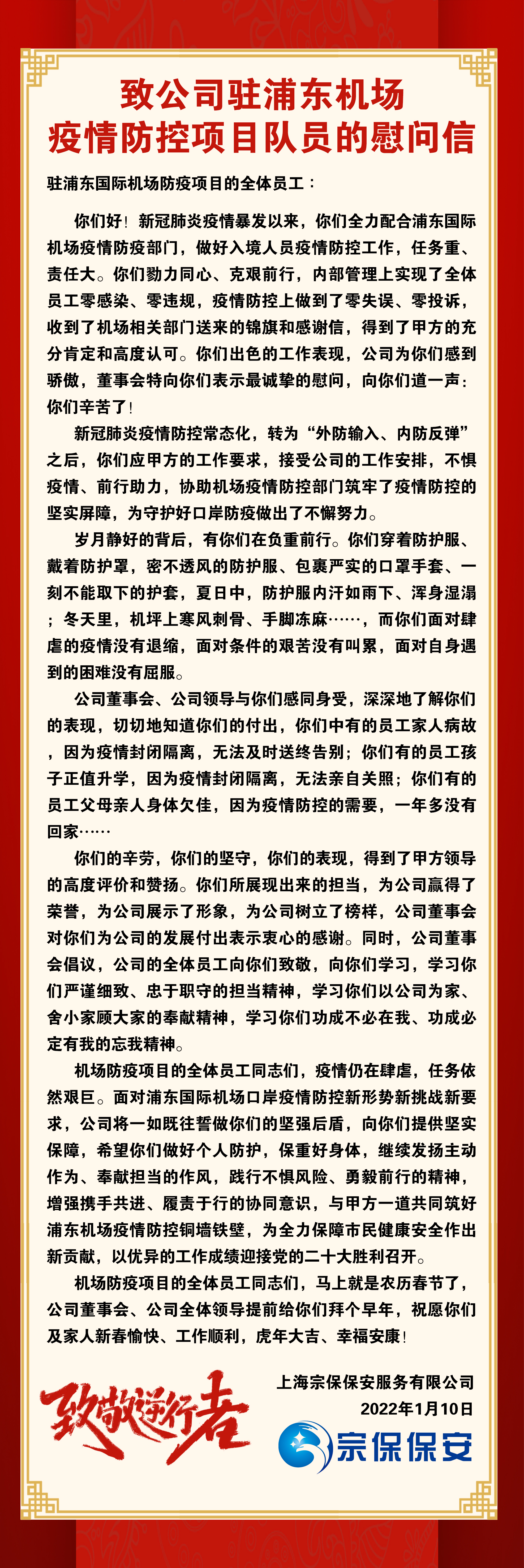 致宗保機(jī)場(chǎng)防疫隊(duì)員的一封信