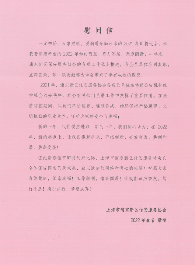 協(xié)會(huì)領(lǐng)導(dǎo)的關(guān)懷,宗保員工們備受鼓舞。大家表示,將繼續(xù)發(fā)揚(yáng)吃苦耐勞、樂于奉獻(xiàn)的精神,認(rèn)真履職、文明值勤,全力配合做好甲方賦予的各項(xiàng)工作任務(wù),努力為浦東新區(qū)平安建設(shè)作出應(yīng)有的貢獻(xiàn)。