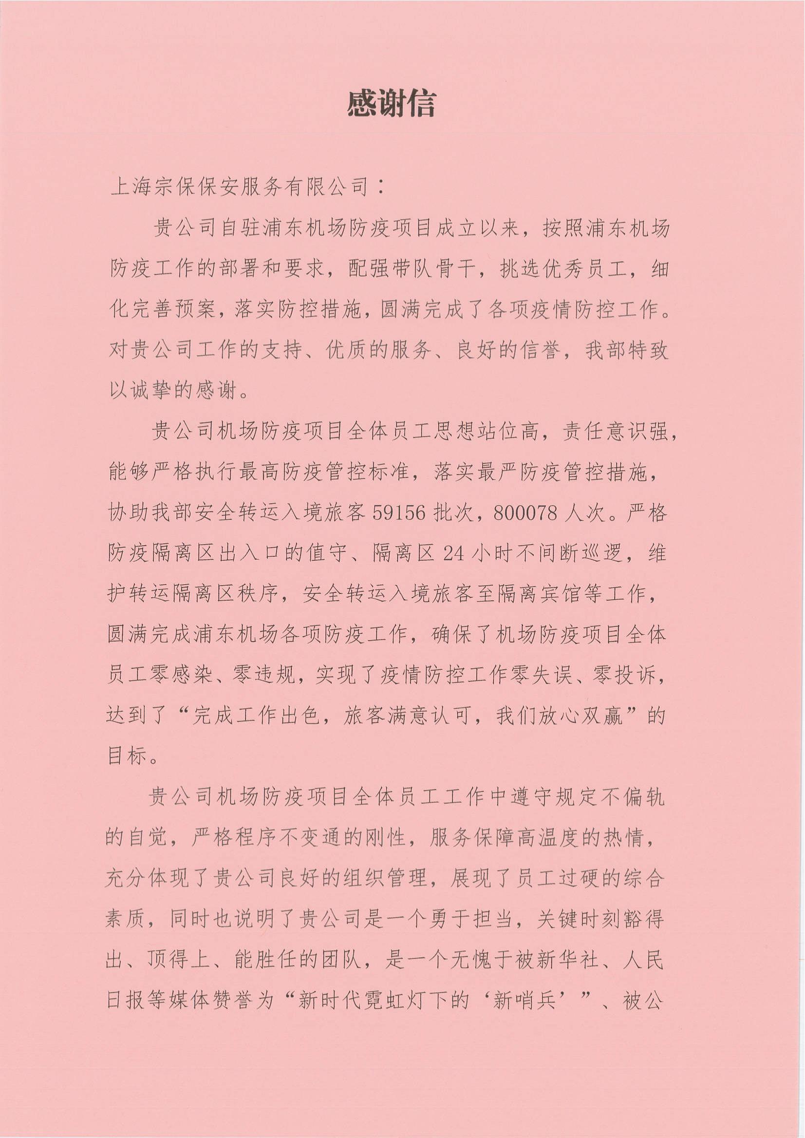 宗保公司自駐浦東機(jī)場防疫項(xiàng)目成立以來,按照浦東機(jī)場防疫工作的部署和要求,配強(qiáng)帶隊骨干,挑選優(yōu)秀員工,細(xì)化防控預(yù)案。駐機(jī)場防疫項(xiàng)目的全體員工思想站位高,責(zé)任意識強(qiáng),嚴(yán)格執(zhí)行防疫管控標(biāo)準(zhǔn),落實(shí)防疫管控措施,圓滿完成了各項(xiàng)疫情防控工作。