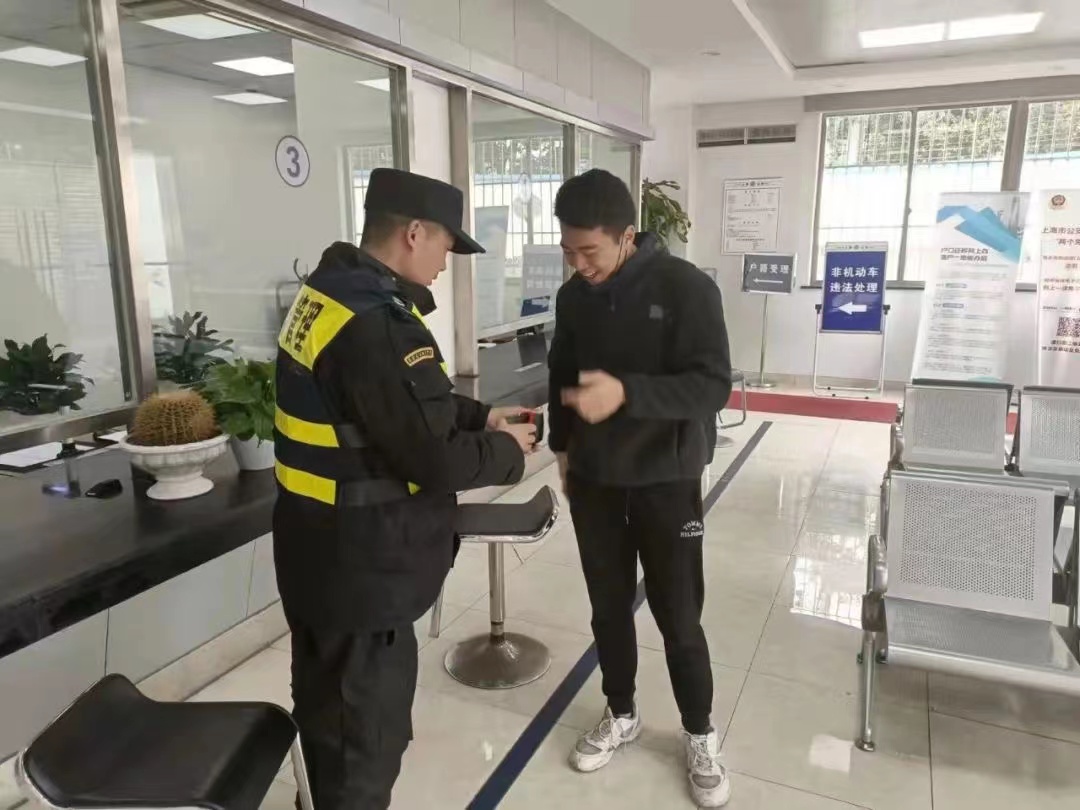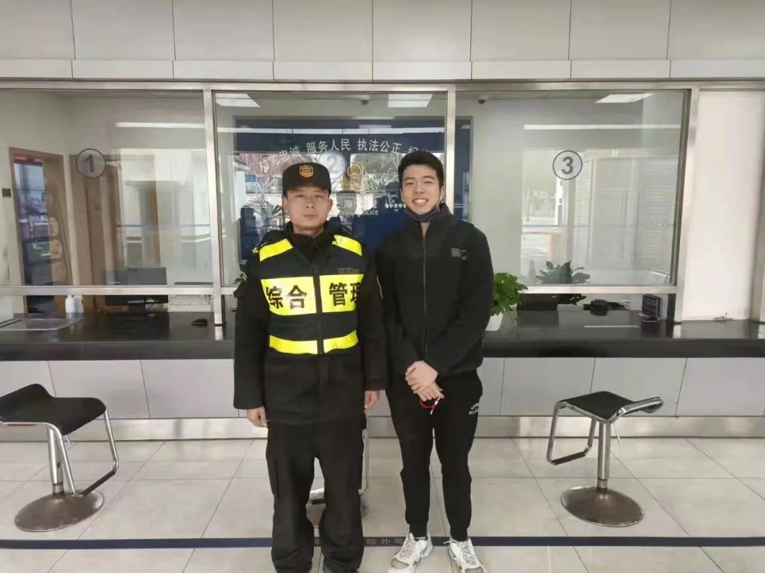 2月22日,宗保公司駐三林市容項(xiàng)目隊(duì)員楊松淼撿到錢包上交值班民警,幫尋失主。