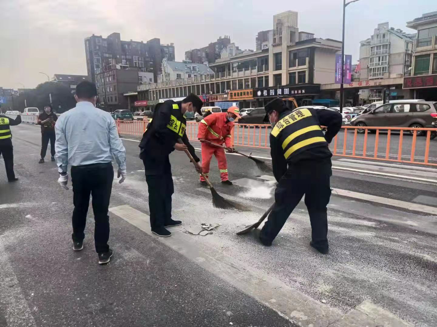見此情形,大家趕緊上前,楊培發(fā)引導(dǎo)路過車輛減速慢行,其他隊(duì)員與隨后趕到現(xiàn)場(chǎng)的保潔員一起進(jìn)行清理。經(jīng)過20多分鐘的努力,路面很快被清掃干凈,道路恢復(fù)了通暢,此舉贏得了過往市民群眾的稱贊。