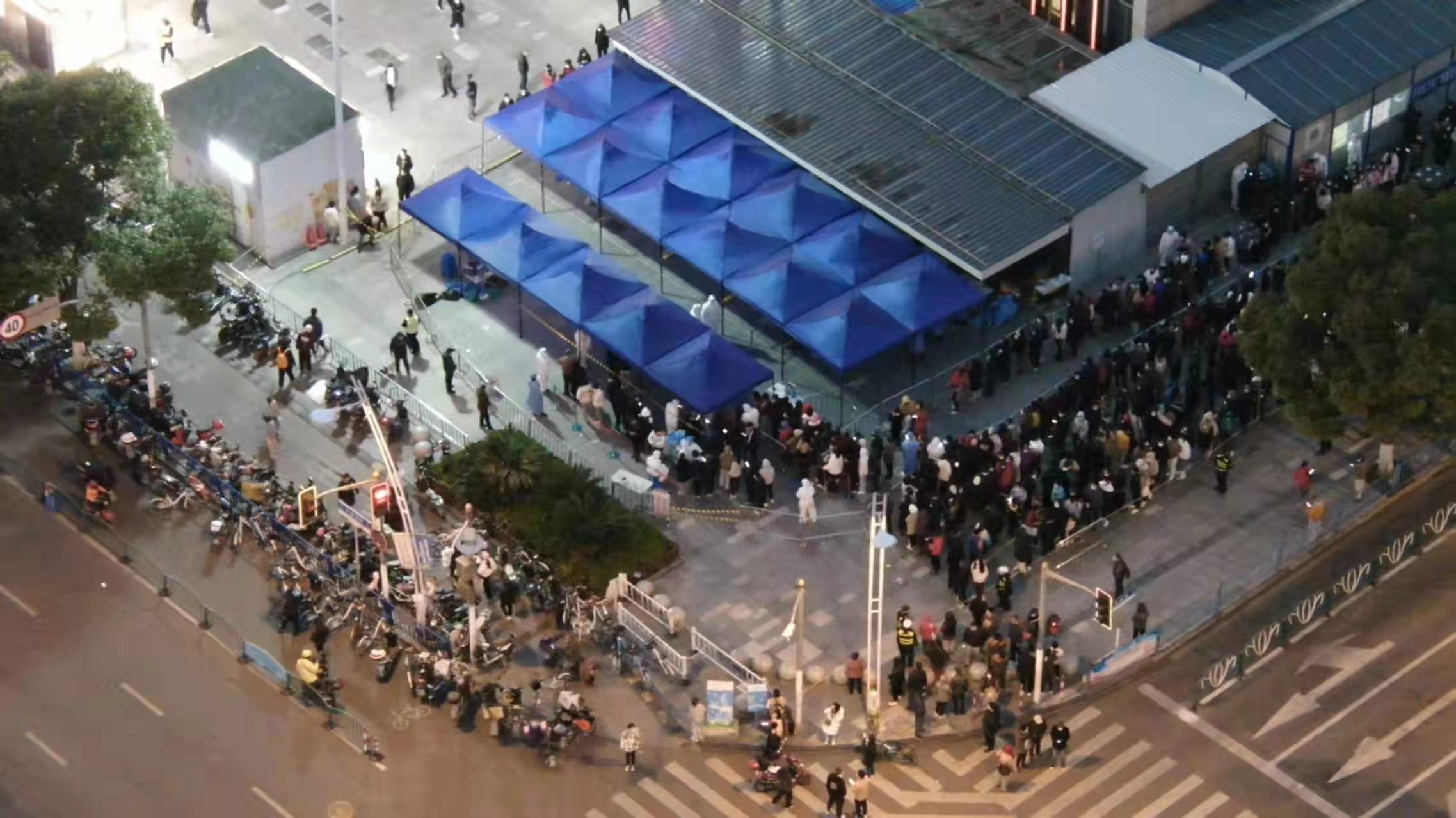 啟用無人機助力疫情防控,對大型核酸檢測現(xiàn)場進行航拍,實時將現(xiàn)場畫面?zhèn)鬏斨翍?yīng)急管理中心,為遠程指揮提供數(shù)據(jù)和情景支撐。通過無人機搭載的喊話器,勸導小區(qū)居民積極參加核酸檢測,并提示大家服從現(xiàn)場安排,有序排隊,戴好口罩,保持2米安全距離。