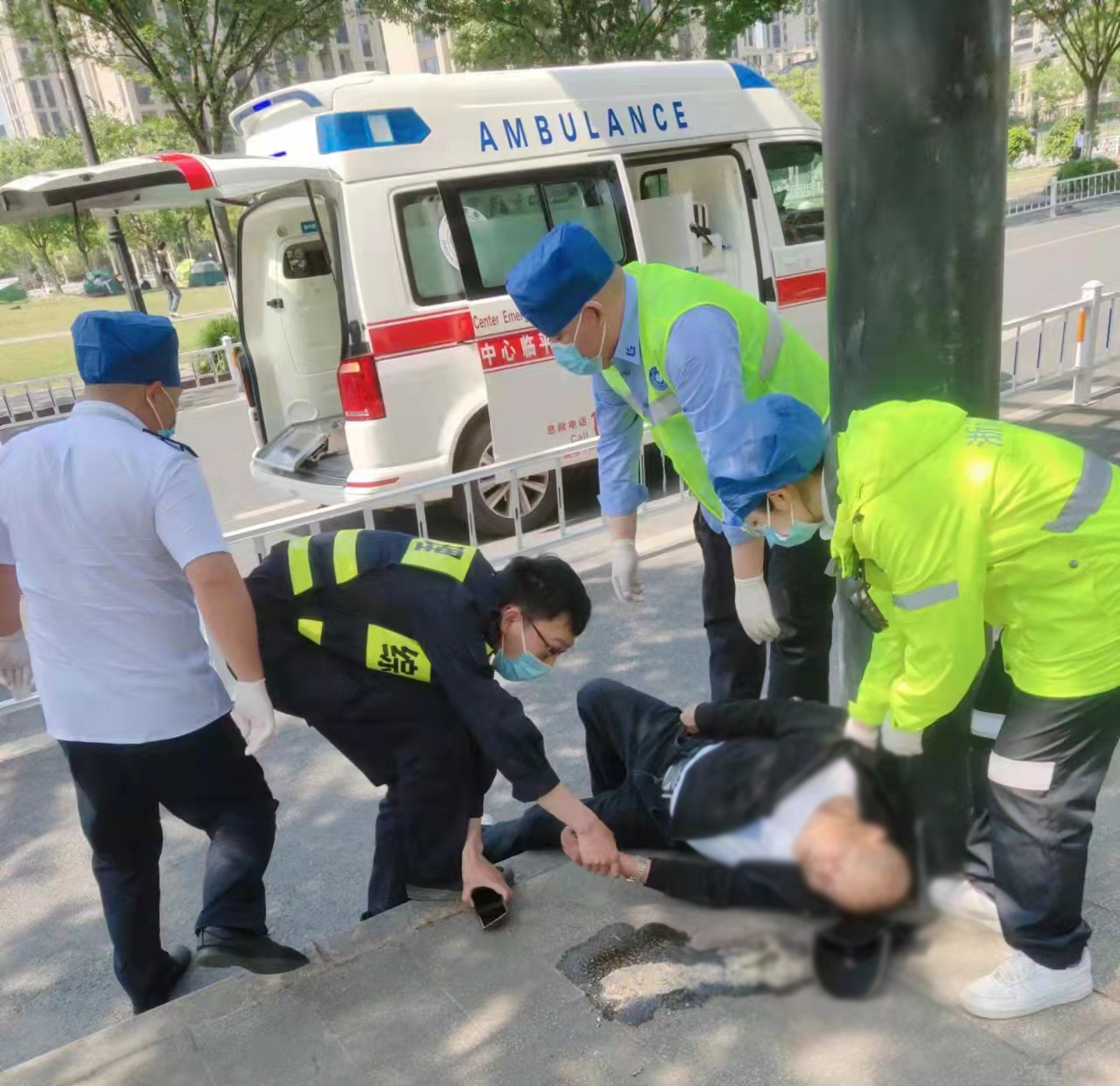5月4日,浙江民泰駐東湖市容項目隊員救助醉酒男子。