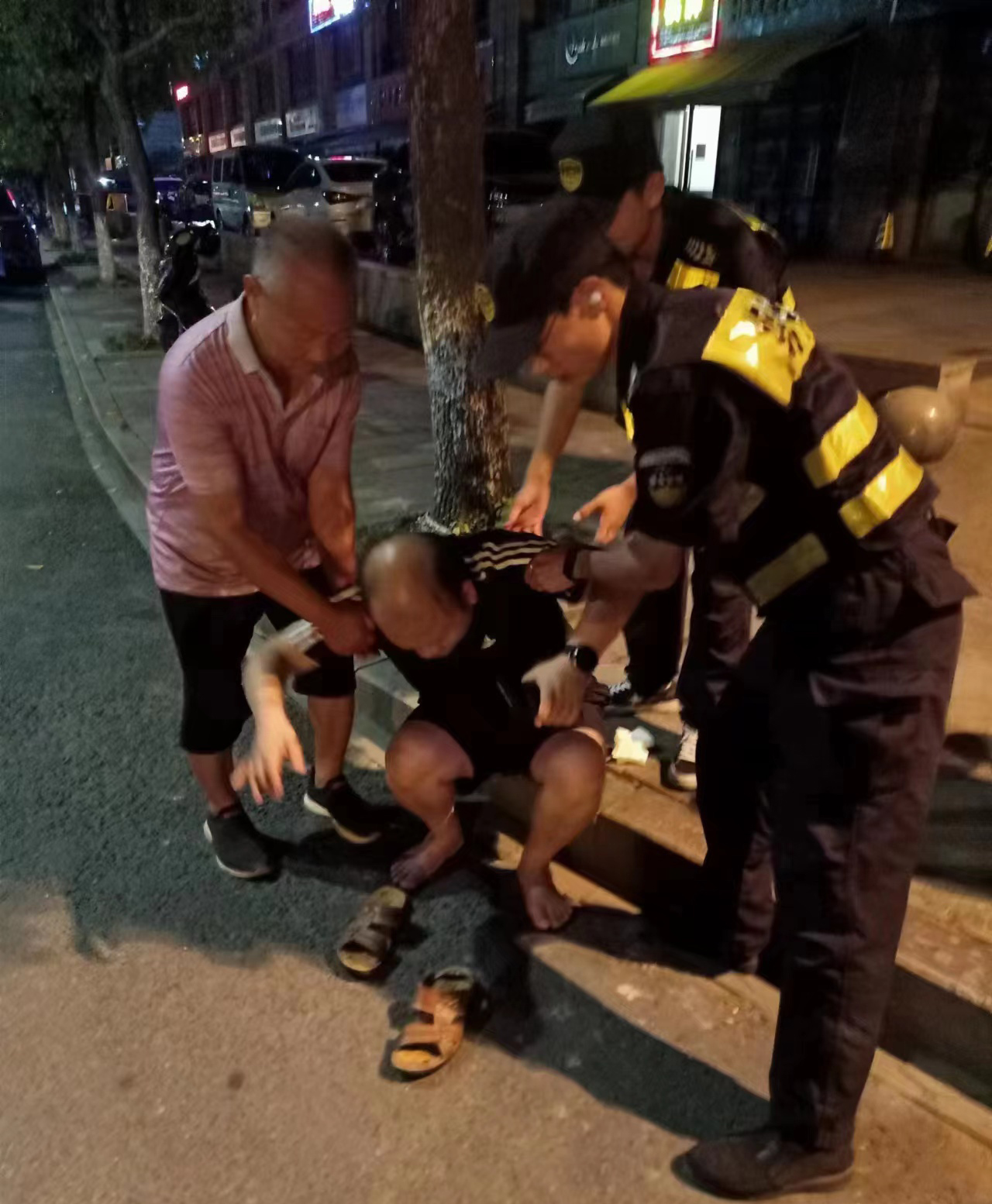 7月3日,浙江民泰駐良渚新城地鐵項目隊員幫助醉酒男子。