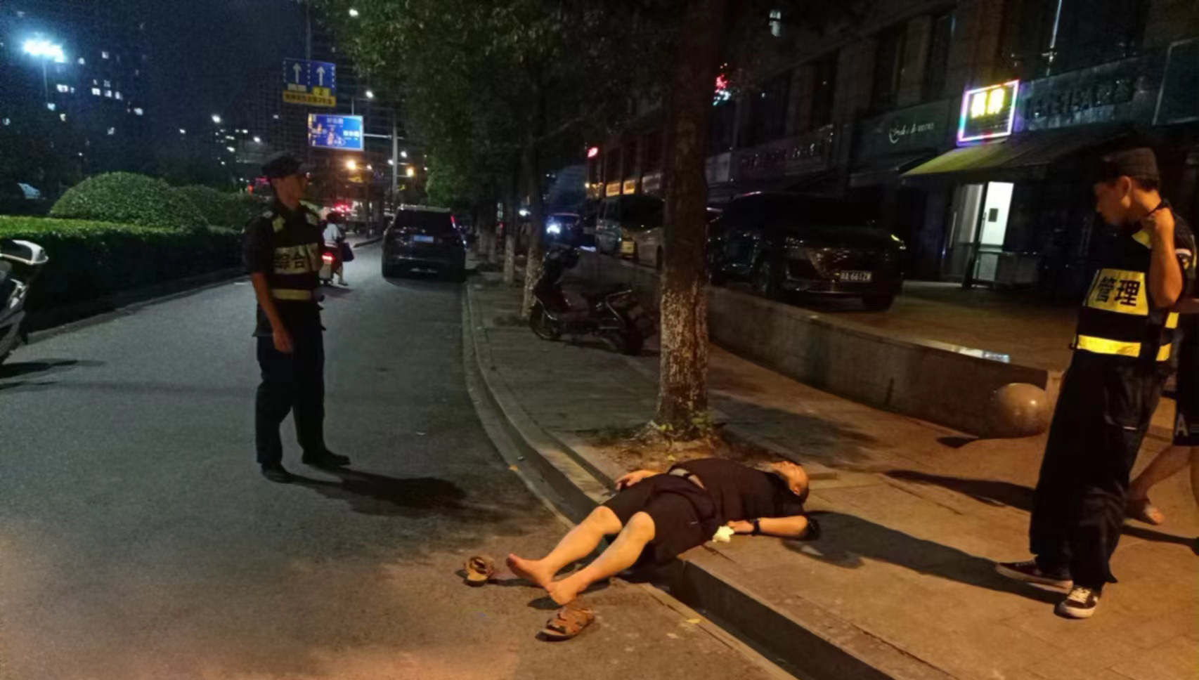當日22:36,張奇、蘇建程和江偉峰在昌運里通運街與儲運路交叉口附近巡邏時,發(fā)現(xiàn)一名中年男子躺倒在路邊,便隨即上前察看。