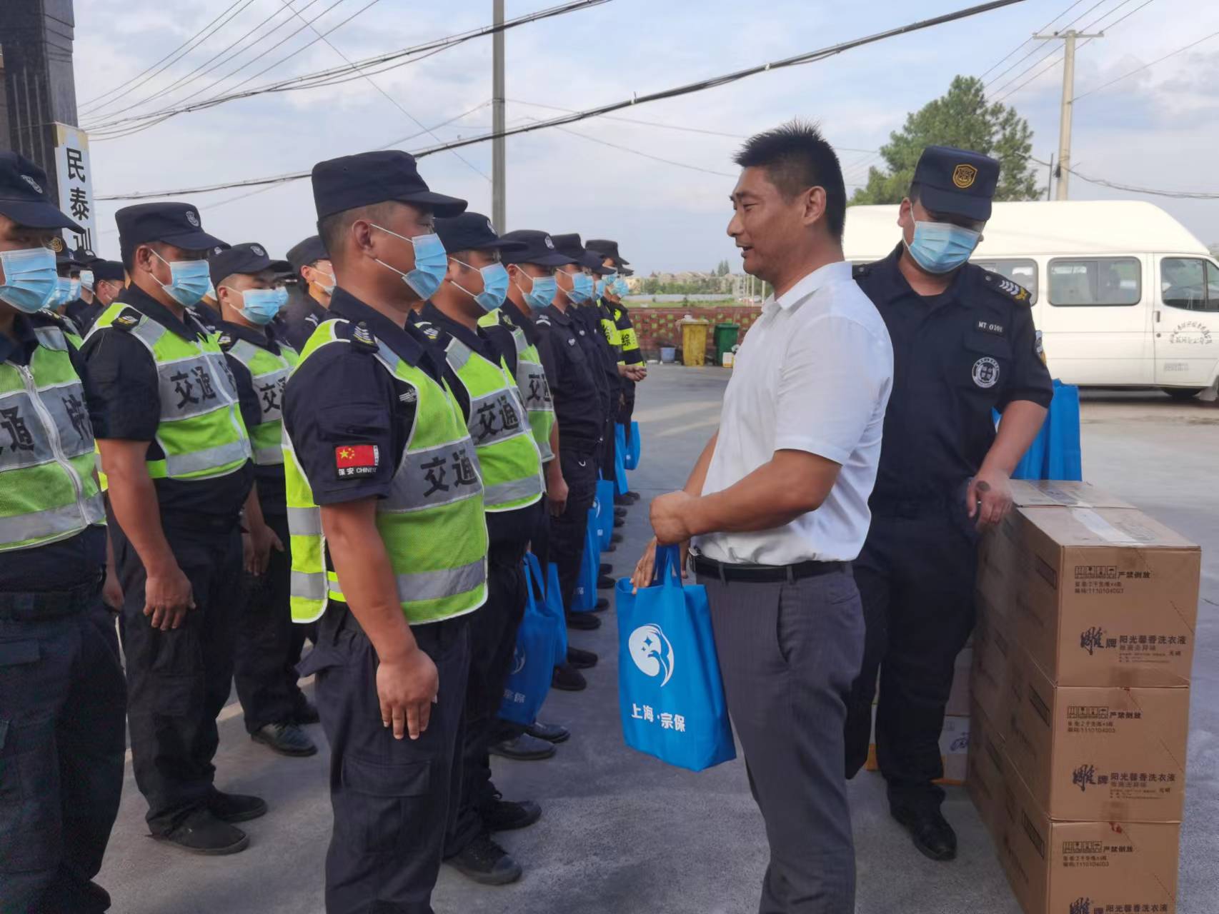 近日,為表達(dá)公司對全體員工的關(guān)心和愛護(hù),公司董事長、總經(jīng)理和各位副總經(jīng)理帶著真摯的問候,載著清涼的用品,分赴公司各區(qū)域,來到公司各項目,看望慰問員工,為員工們送上洗發(fā)水、沐浴露、洗衣液等防暑降溫物品。