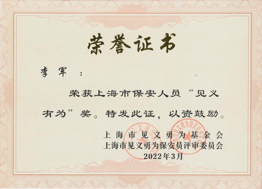 活動(dòng)中,上海市保安服務(wù)行業(yè)協(xié)會(huì)對(duì)近期榮獲第五屆全國(guó)優(yōu)秀保安員、第五屆全國(guó)先進(jìn)保安服務(wù)公司、上海市第三屆見義勇為保安員等獲獎(jiǎng)代表進(jìn)行了表彰。