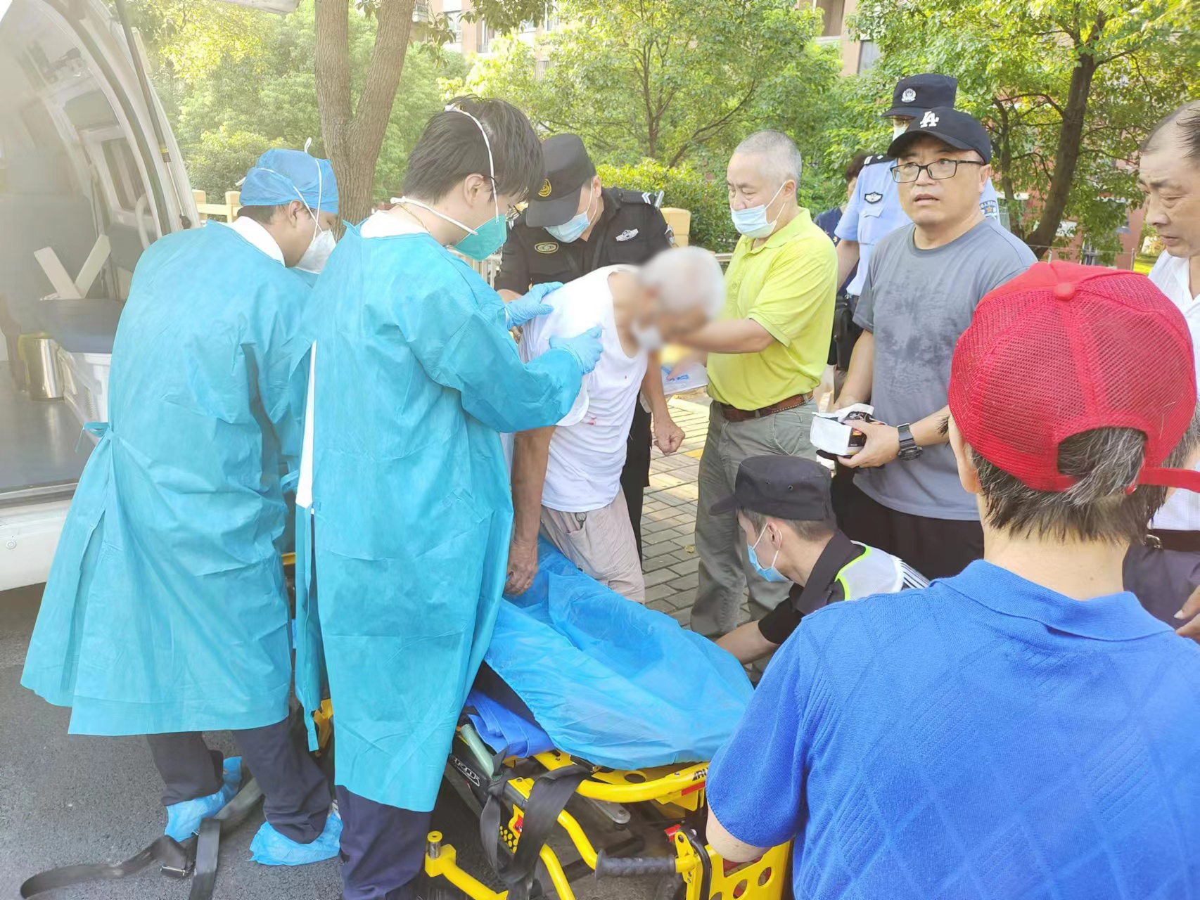 很快,民警和120救護(hù)車趕到了現(xiàn)場,三人又協(xié)助醫(yī)護(hù)人員將受傷老人抬上救護(hù)車,由救護(hù)車送往醫(yī)院治療。