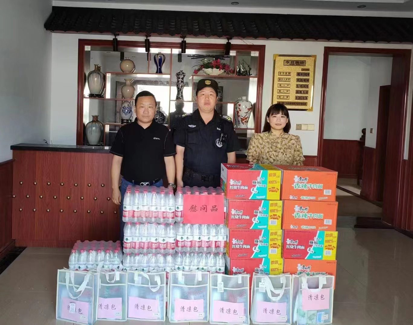閆安副書記為宗保員工送上防暑降溫慰問品,充分肯定了大家在鎮(zhèn)文明城市創(chuàng)建和疫情防控中所展現(xiàn)的不怕辛苦、連續(xù)奮戰(zhàn)的擔(dān)當(dāng)精神,感謝大家不畏酷暑、盡職履責(zé)的辛勤付出,叮囑大家做好高溫防護(hù),安排好作息時間,勞逸結(jié)合注意身體。