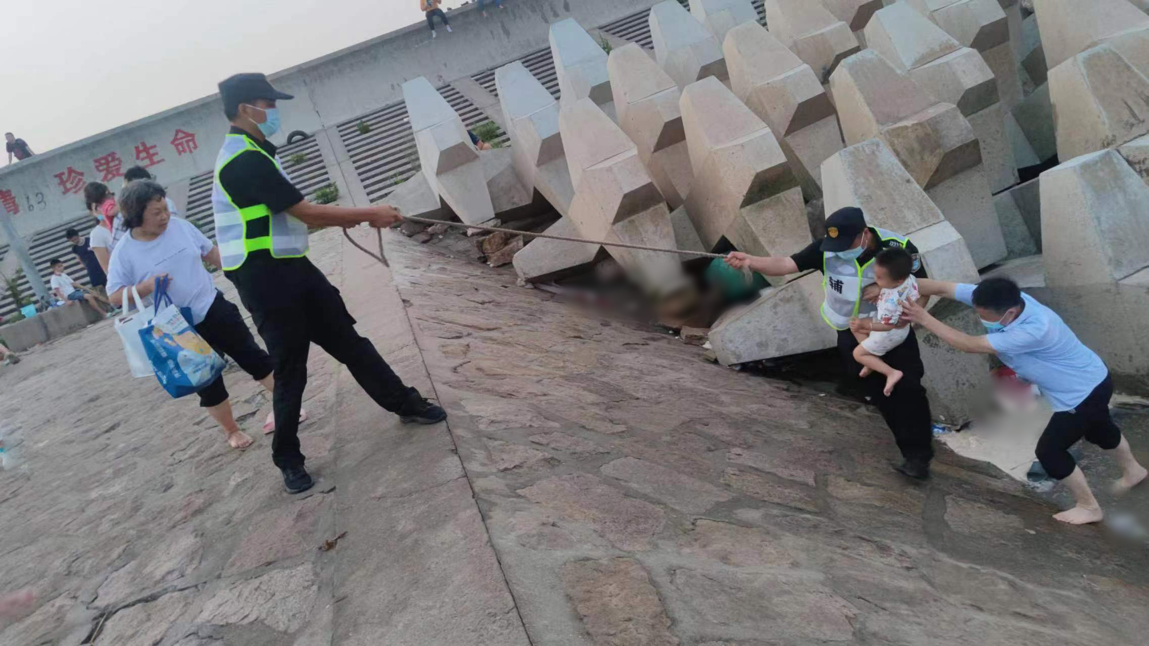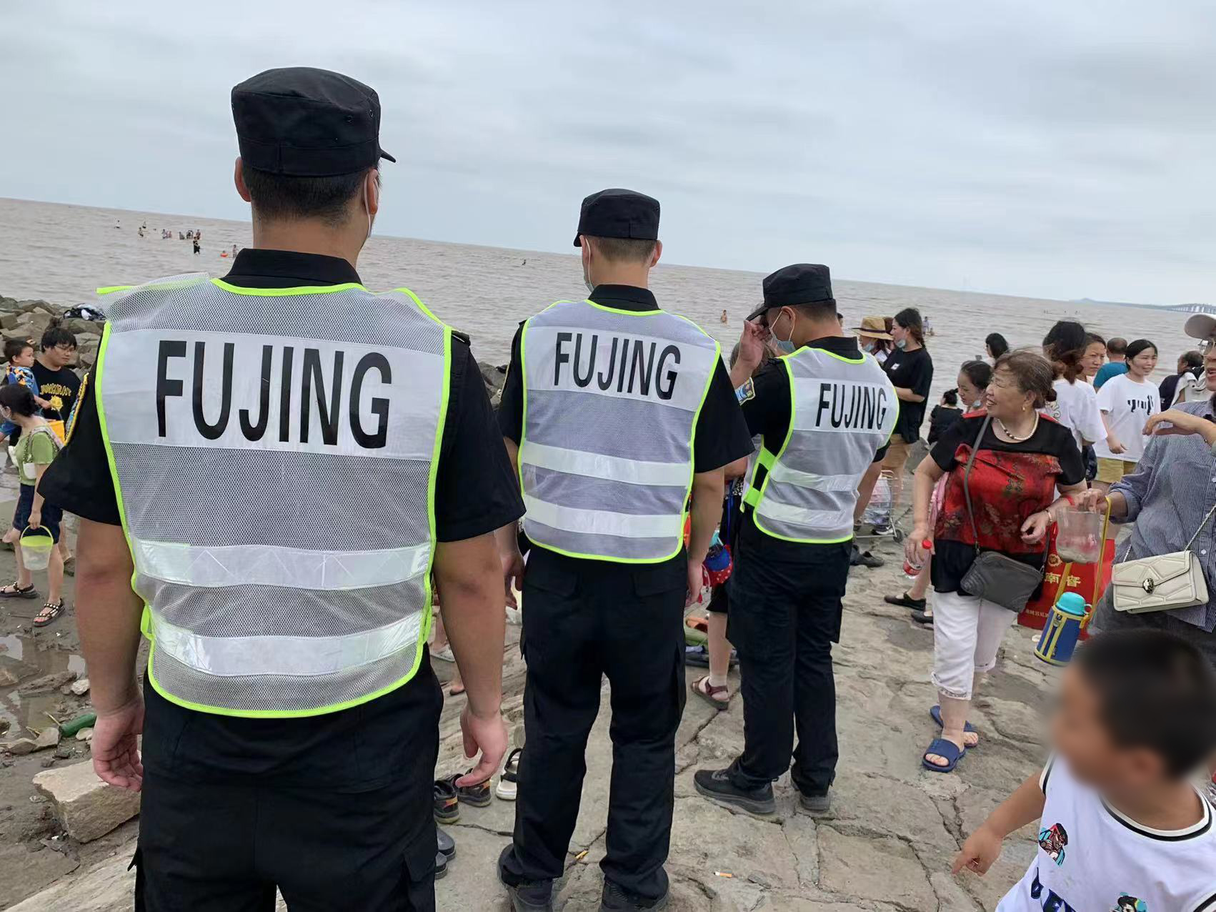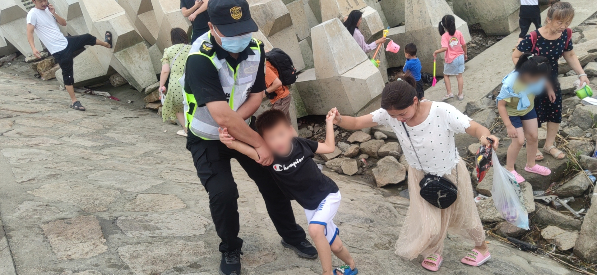 海堤邊當市民游客盡情玩耍享受著清涼時,宗保員工們則頂著炎炎烈日值守著,他們仔細地巡察著海堤,關注著突發(fā)情況,不厭其煩地提醒著市民游玩時注意安全。