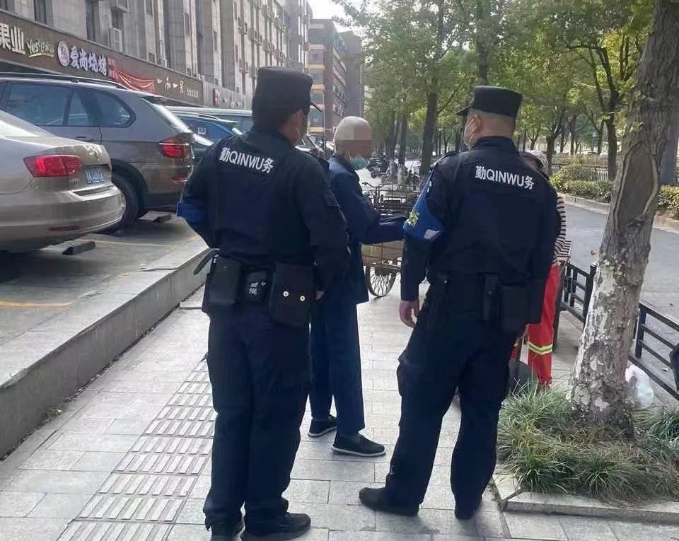 原來,大爺走路時(shí)不慎摔了一跤,一時(shí)站不起來。靳龍龍連忙查看大爺傷勢如何,所幸腿部只有一點(diǎn)點(diǎn)擦傷。隊(duì)員馮孝峰是良渚本地人,經(jīng)過方言一番溝通,了解到大爺姓金,今年82歲,家就住在不遠(yuǎn)處的某小區(qū)。